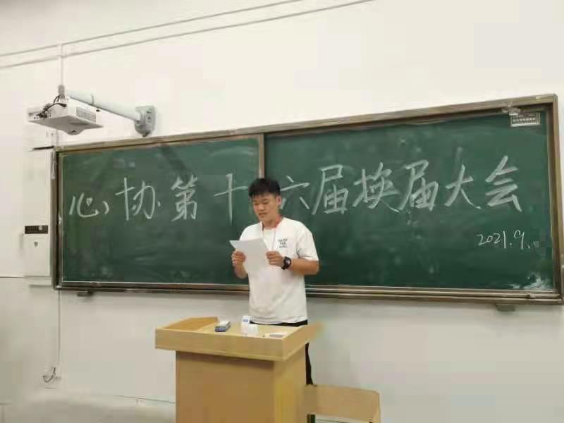 2021年9月22日中午,校心理健康协会在1103教室举行第十六届换届大会。大学生心理协会会长、部长以及各干事参加了此次大会。会议由会长吴晓东主持。