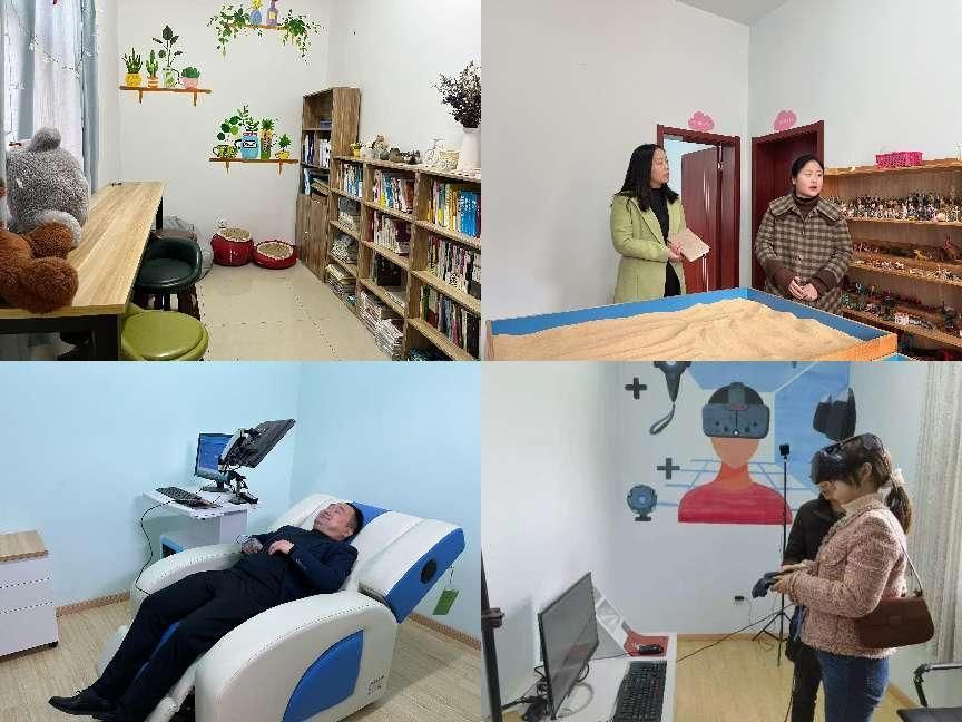 在到达咨询中心楼后,滁州学院大学生心理健康咨询中心的张瑾、刘国振两位老师给予了热情接待,带领我们参观了咨询中心的活动室,包括VR体验室、音乐治疗室、情绪宣泄室、个案咨询室、案例研讨室等,张瑾老师在详细介绍的过程中还邀请我院辅导员体验了相关项目。