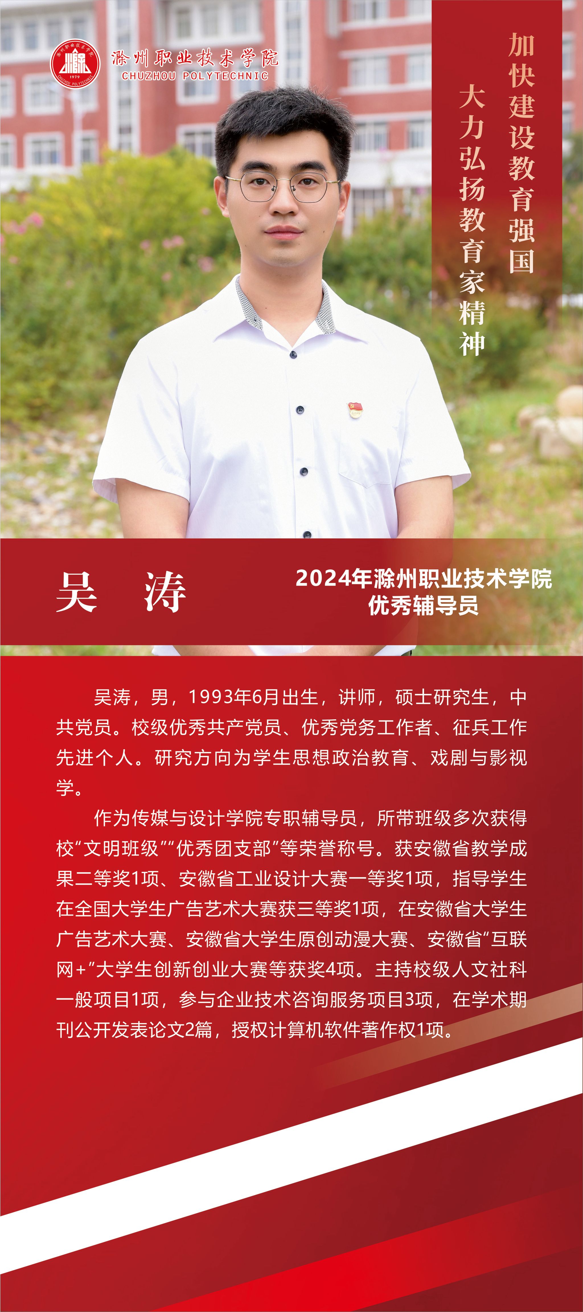 2024年beat365在线唯一官网最美辅导员——吴涛