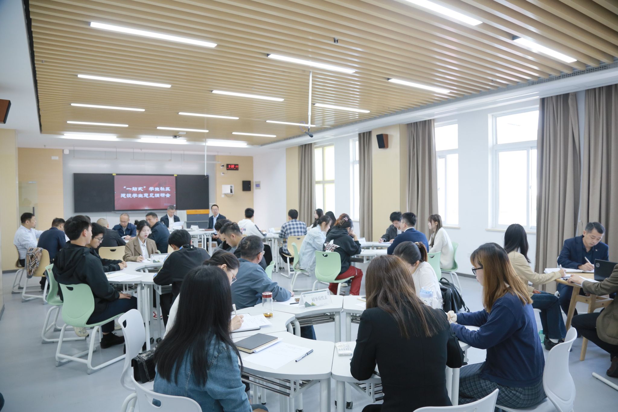 会上,学生工作处简要汇报了学校“一站式”学生社区综合管理模式建设工作有关情况。与会师生代表围绕相关工作事项各抒己见,踊跃发言。