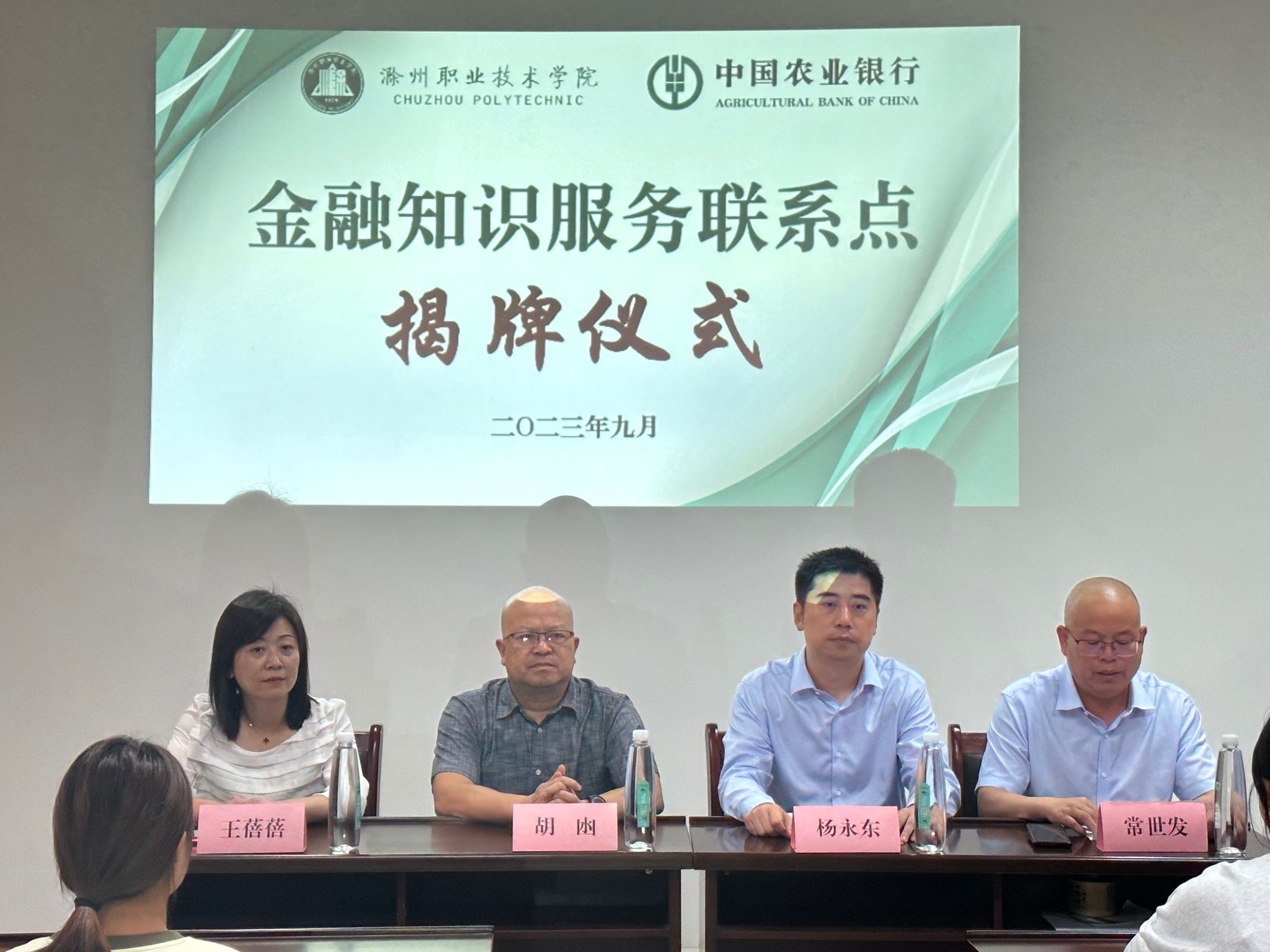 揭牌仪式后,中国农业银行滁州市分行的员工就反洗钱、征信等金融知识,为学生开展了生动的宣讲。