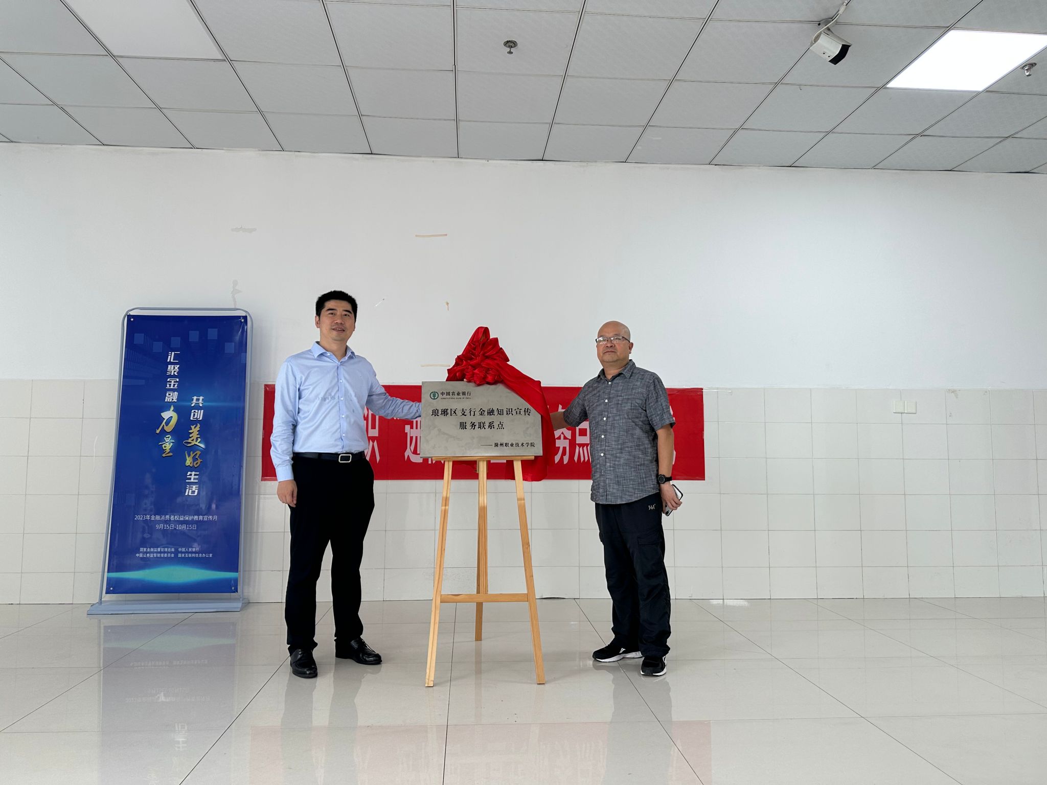 9月26日下午,beat365与中国农业银行滁州市分行共建金融知识宣传服务点授牌仪式在beat365举行。校党委委员、副校长胡凼,中国农业银行滁州分行党委委员、副行长杨永东出席仪式并揭牌。
