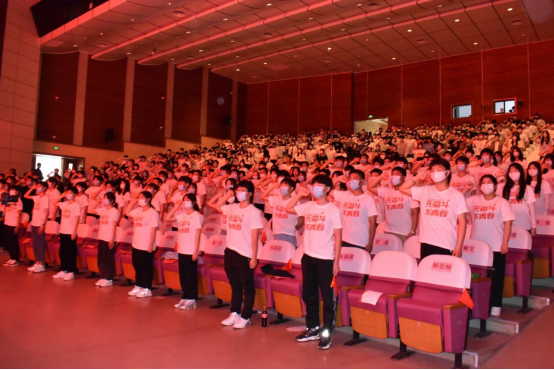 第一篇章结束后,新团员代表带领83名新团员以及在场所有老团员重温入团誓词。随后,中共beat365在线唯一官网委员会为全校广大青年学子送上五四寄语,校党委副书记杨家庆宣读了寄语。