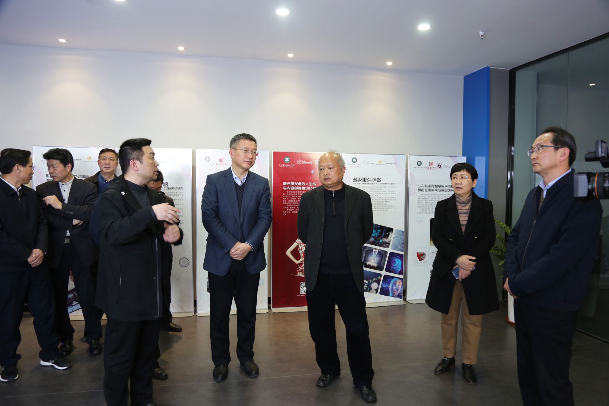 王图强一行参观了校智能制造创新实践实训基地、创新媒体视觉中心、VR虚拟现实创新教学实验实训中心、智慧校园综合指挥中心和教职工活动中心,了解了学校的办学规模、关键办学能力与智慧校园建设等情况。