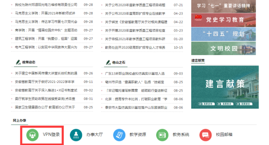 方式一:师生校外访问beat365在线唯一官网官网,点击页面左下角的“VPN登录”,使用工号和密码登录即可,可在校外访问相关业务系统(如,财务报销、诊改平台、中国知网等),实现远程办公。