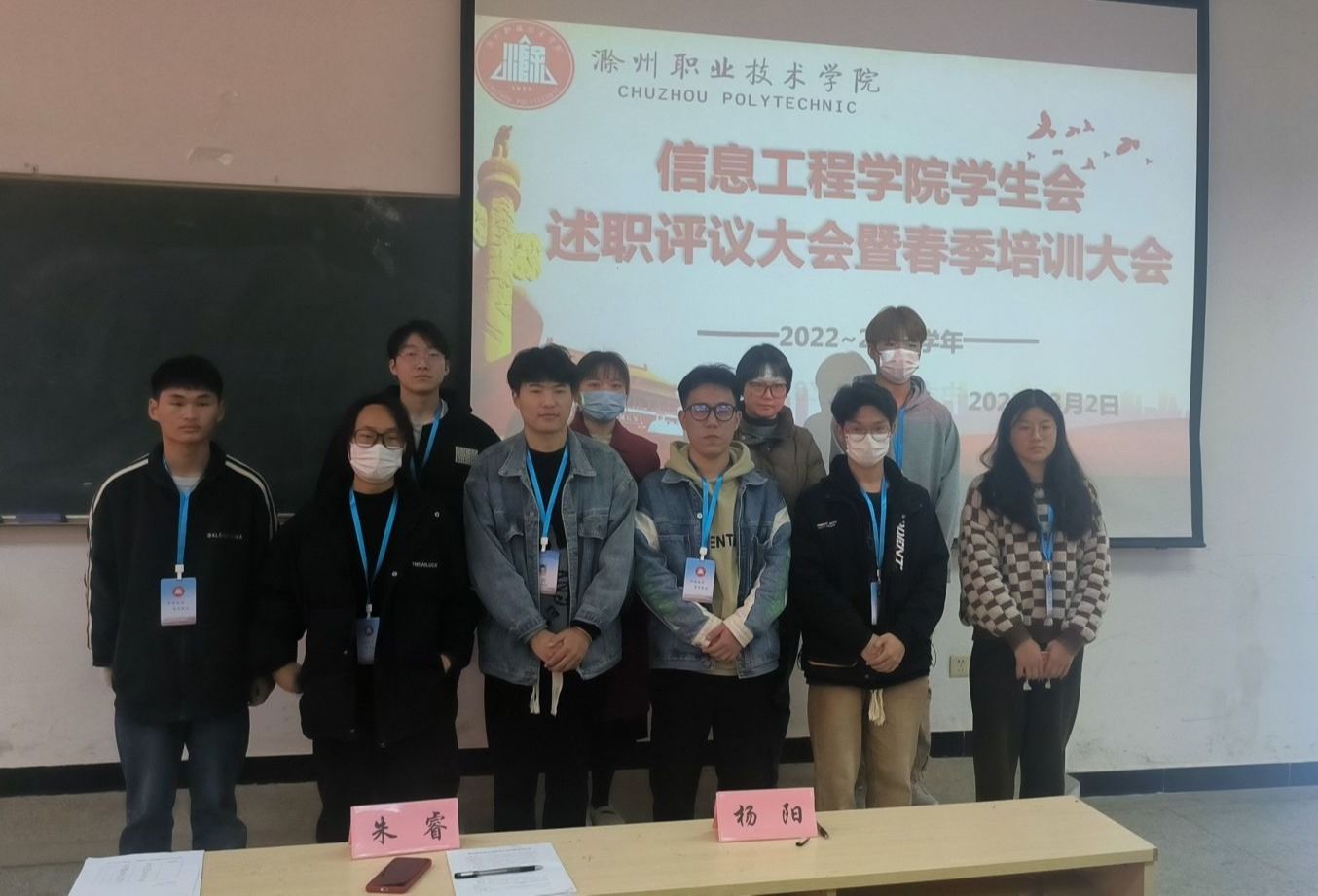 为深入学习宣传贯彻党的二十大精神,进一步深化学生会改革,激发学生会组织活力,加强对学生会工作的指导、监督和管理。3月3日中午,信息工程学院学生会述职评议大会暨春季培训大会在南阶103教室顺利召开。院党总支副书记杨阳老师,院团总支书记朱睿老师,以及学生会全体学干参与本次会议。