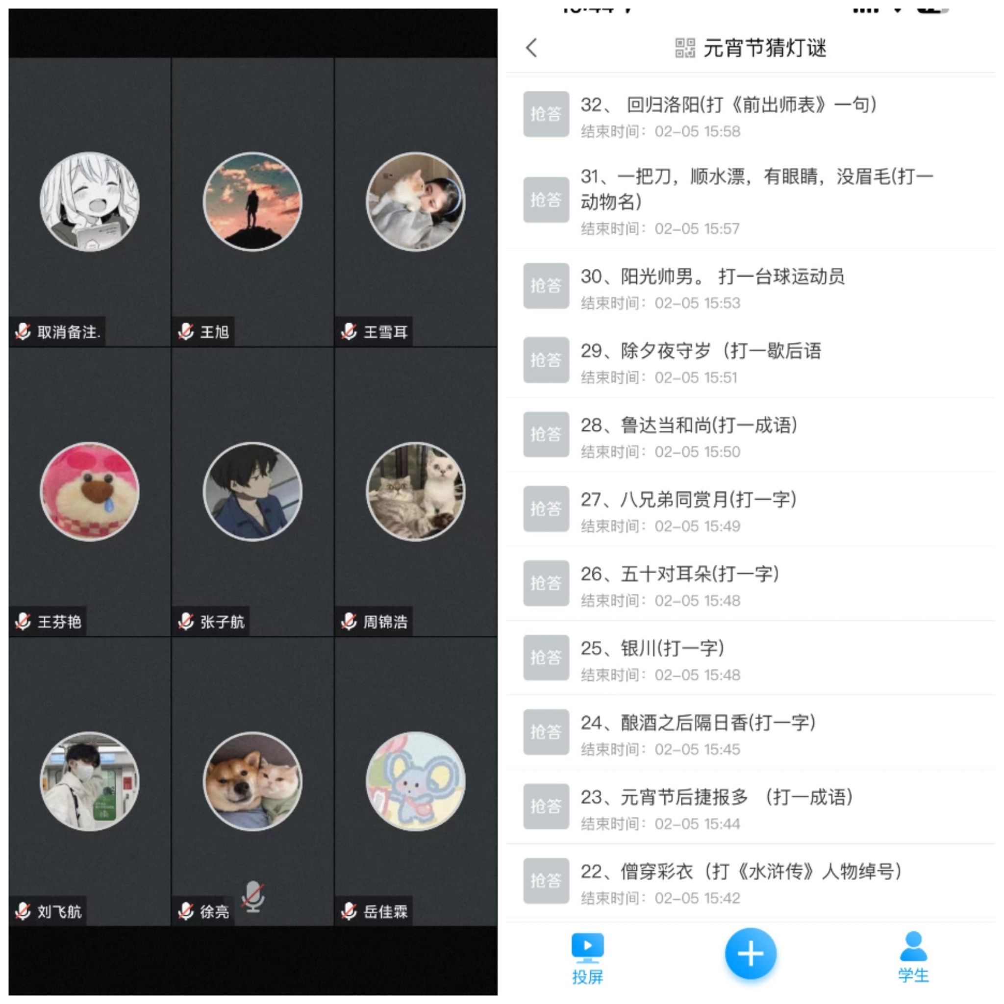 活动中,主持人张家豪给同学们介绍了元宵节的起源与传统习俗,同学们积极互动交流。接下来的猜灯谜环节更是将活动推向高潮,谜面则以元宵主题的成语迷、数字迷、猜字谜等内容为主,同学们在个个争先恐后,积极抢答思考,共同探讨,在群里你一言我一语,讨论谜语的答案,群里洋溢着温馨热闹的节日气息。