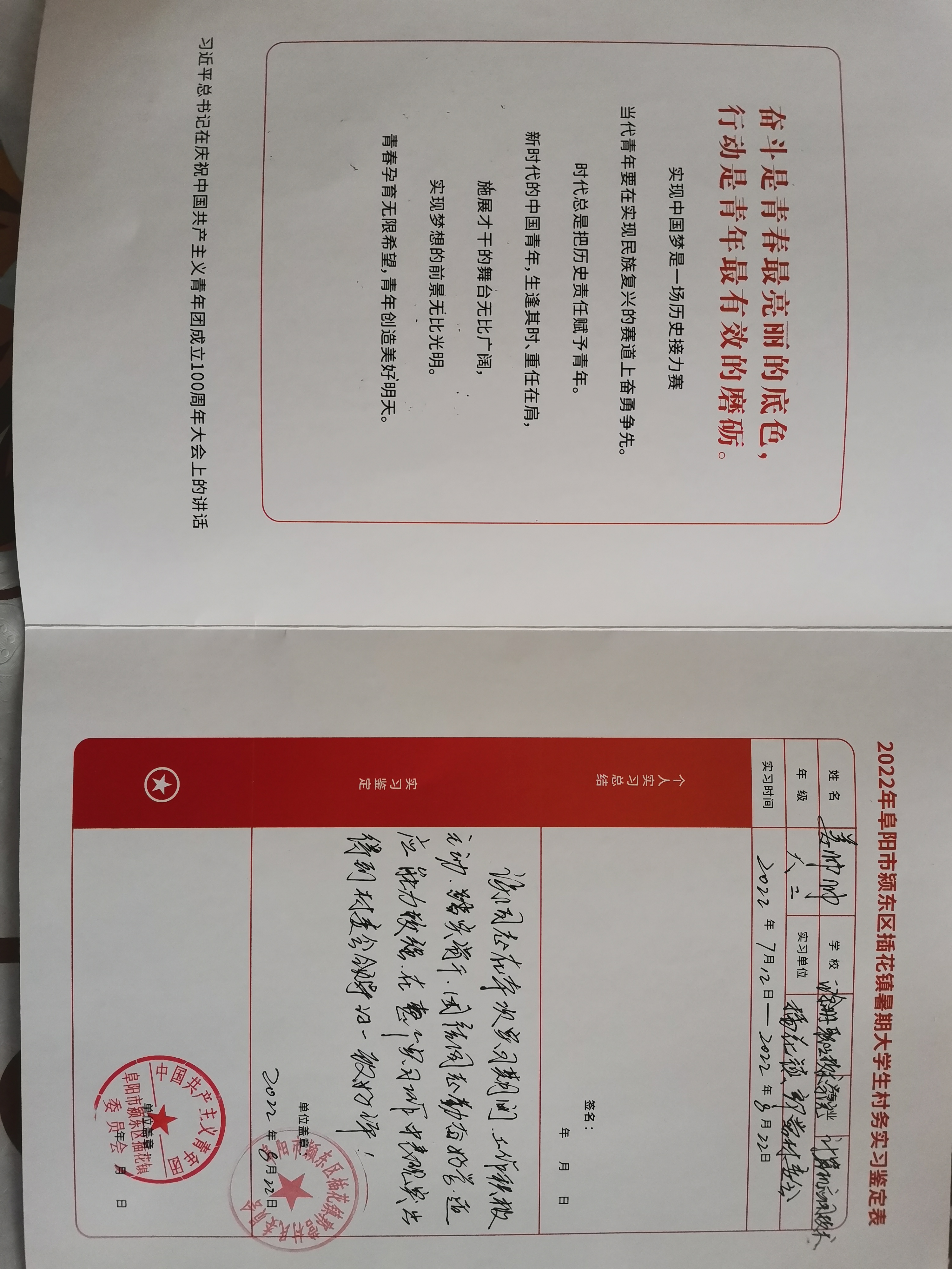 同时,作为大学生代表,姜帅帅在村务实习社会实践启动仪式上发言。实践结束后姜帅帅更是获得了当地村委会的一致好评。