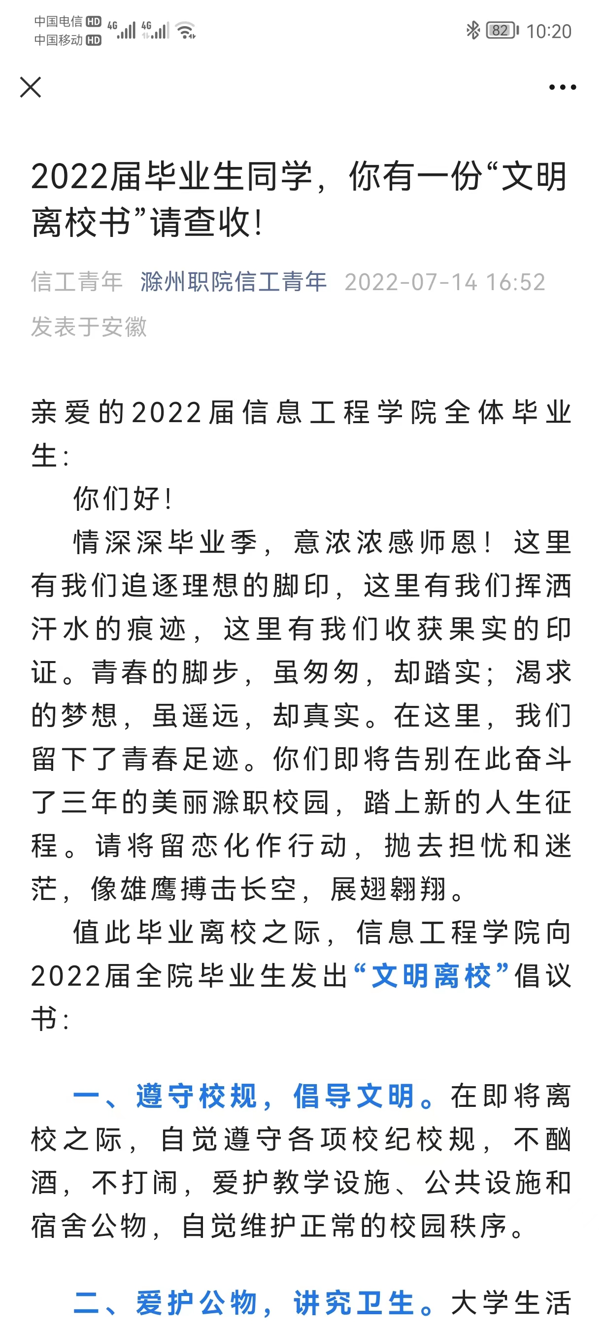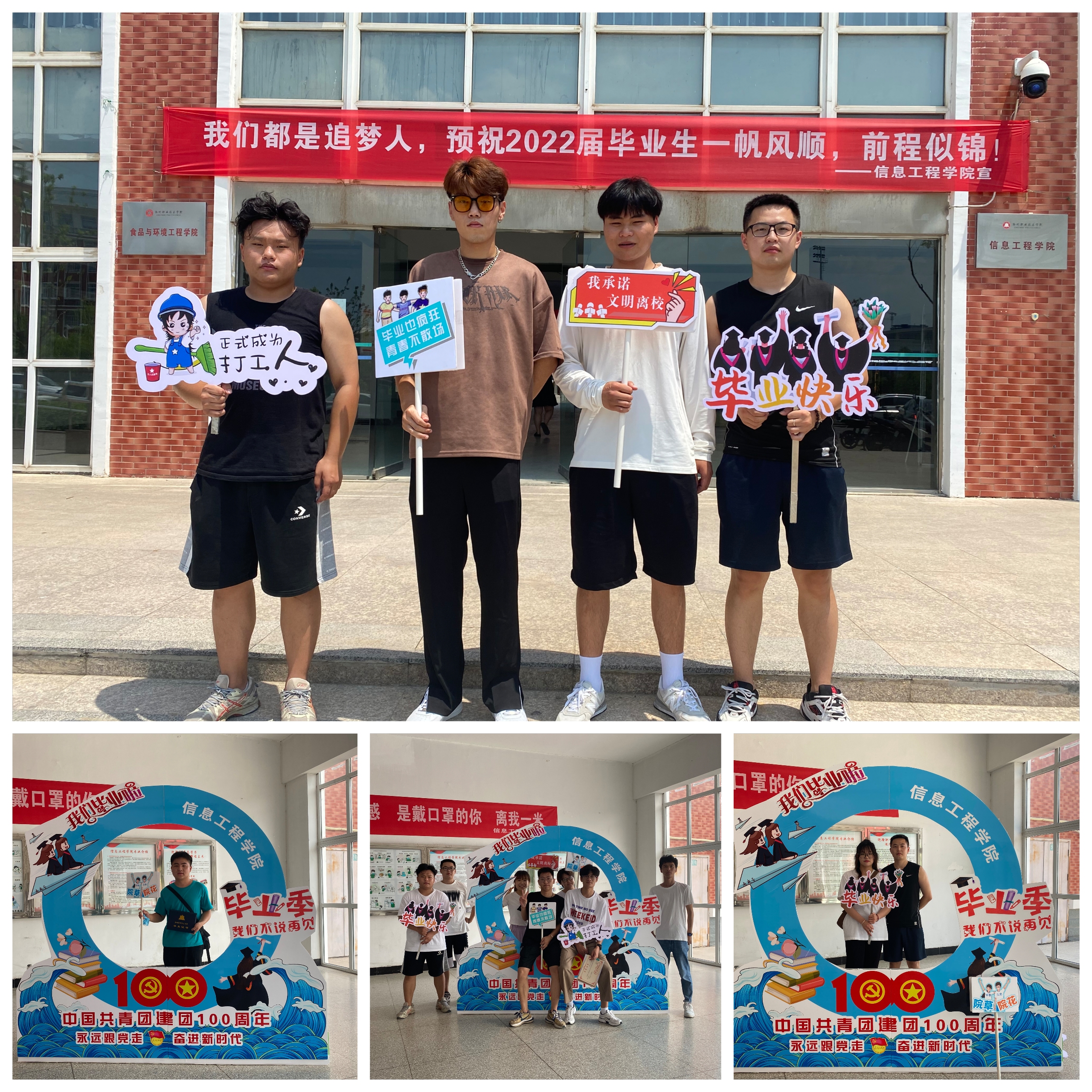 正值2022年毕业季,为切实做好疫情防控期间毕业生离校服务工作,确保毕业生安全顺利、文明有序离校,信息工程学院结合学校《关于做好2022届毕业生文明离校工作的通知》的文件,开展了形式多样、内容精彩的毕业生文明离校系列活动,给2022届毕业生创造更文明、更温暖、更难忘的离校氛围。