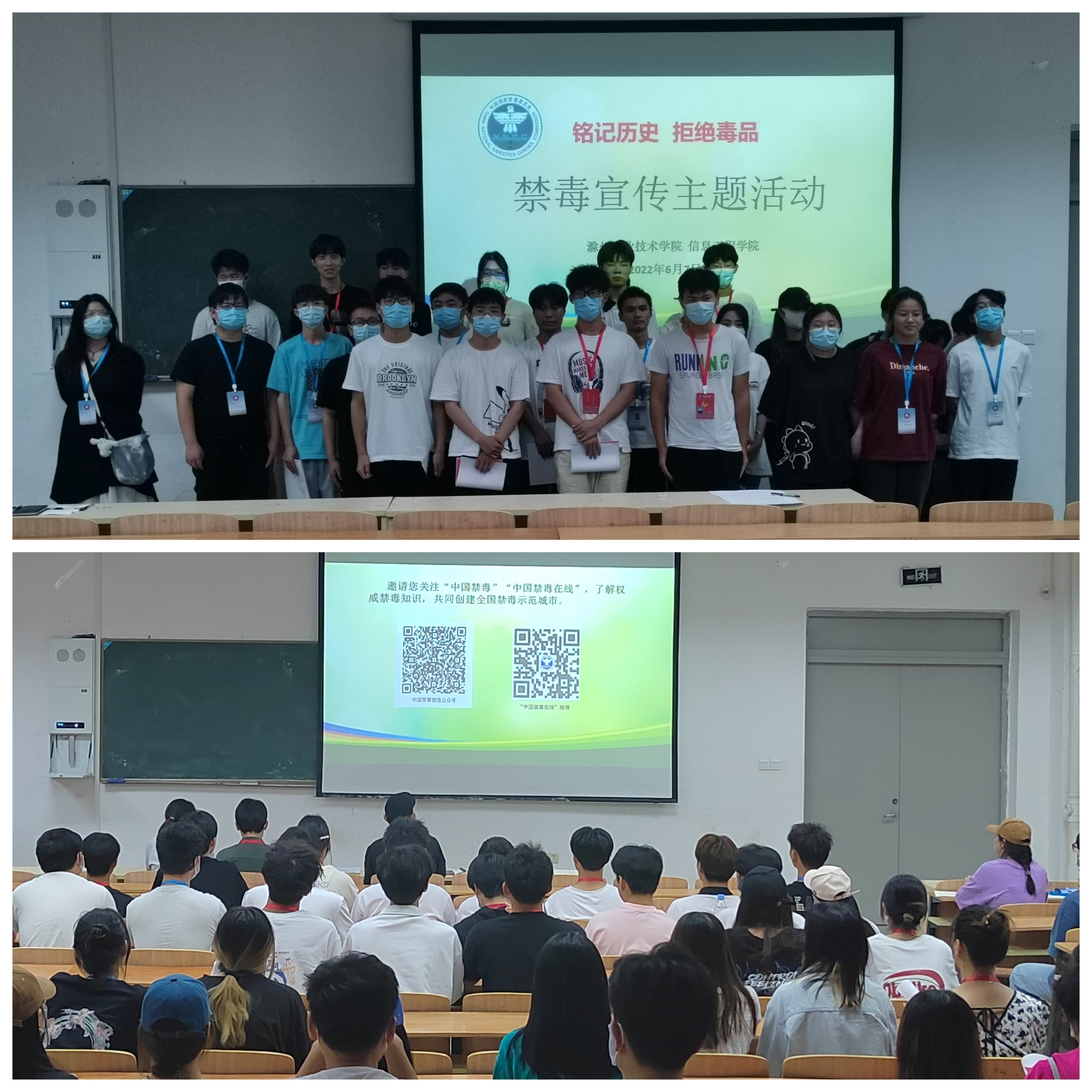为进一步加强我院学生的毒品预防教育,强化学生禁毒意识,以优异成绩迎接党的二十大胜利召开。同时为纪念虎门销烟183周年,信息工程学院学生会组织各班级学生代表于6月7日在南阶101开展了禁毒宣传主题教育活动。