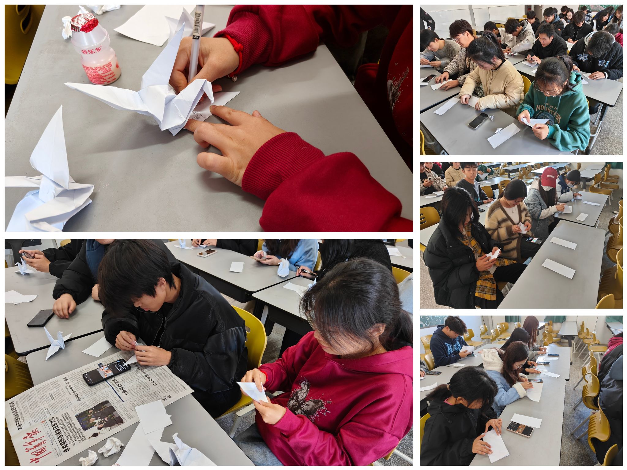 活动中,主持人王奥宇向大家介绍了国家公祭日的历史背景和形成原因,指出国家公祭日是用于追悼、悼念国家重大历史事件中遇难者的日子。随后,王奥宇引领同学们以低头默念的形式,向逝者致以最崇高的敬意。在这一时刻,同学们将沉静身心,内心默默地悼念,表达各自的敬仰与敬意。最后,王奥宇带领同学们一起叠千纸鹤并在其上写下悼念语,以表达对逝者的怀念和祝福,也将这份心意传递给他们的亲人与后人。在这特殊的日子,同学们共同铭记历史、缅怀先烈的庄严时刻,对为国家付出的英雄致以了自己最高的敬意。