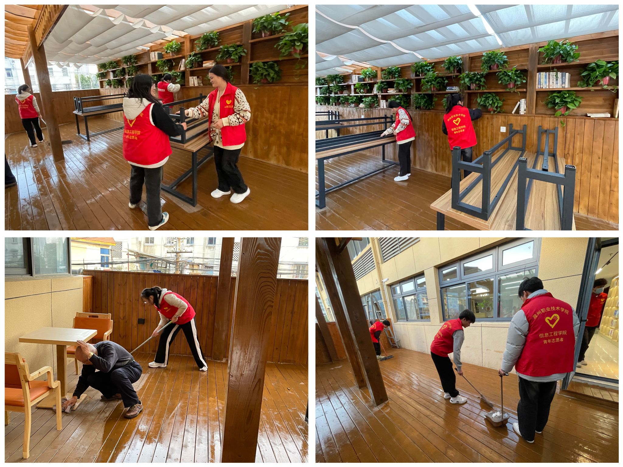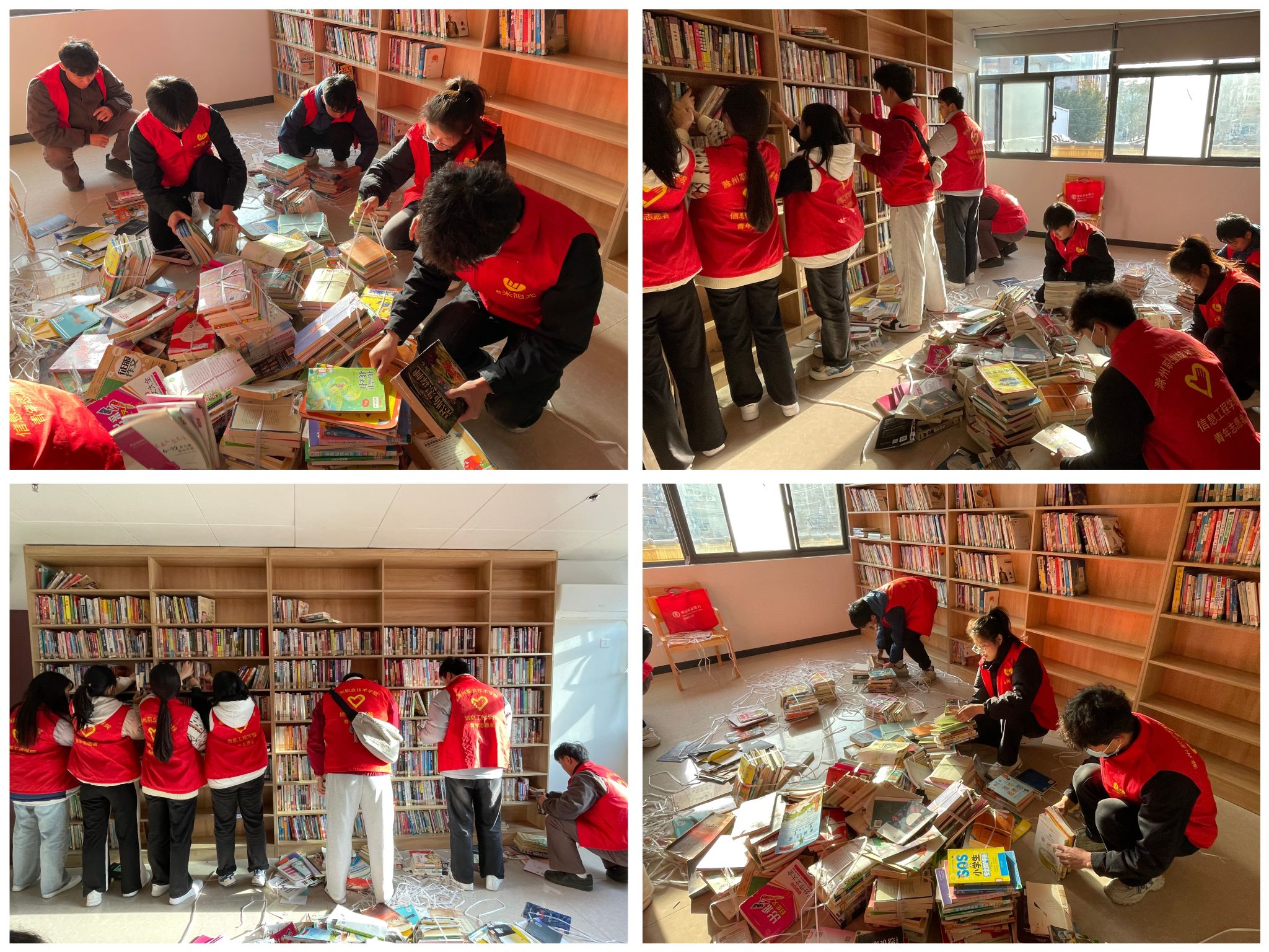 活动中,同学们积极参与,在社区服务中心集合,在社区工作人员的安排下,同学们以小组为单位合理分工,有的负责整理图书,有的负责打扫卫生,有的负责清理社区的绿化区域,大家配合默契,现场气氛活跃而有序。