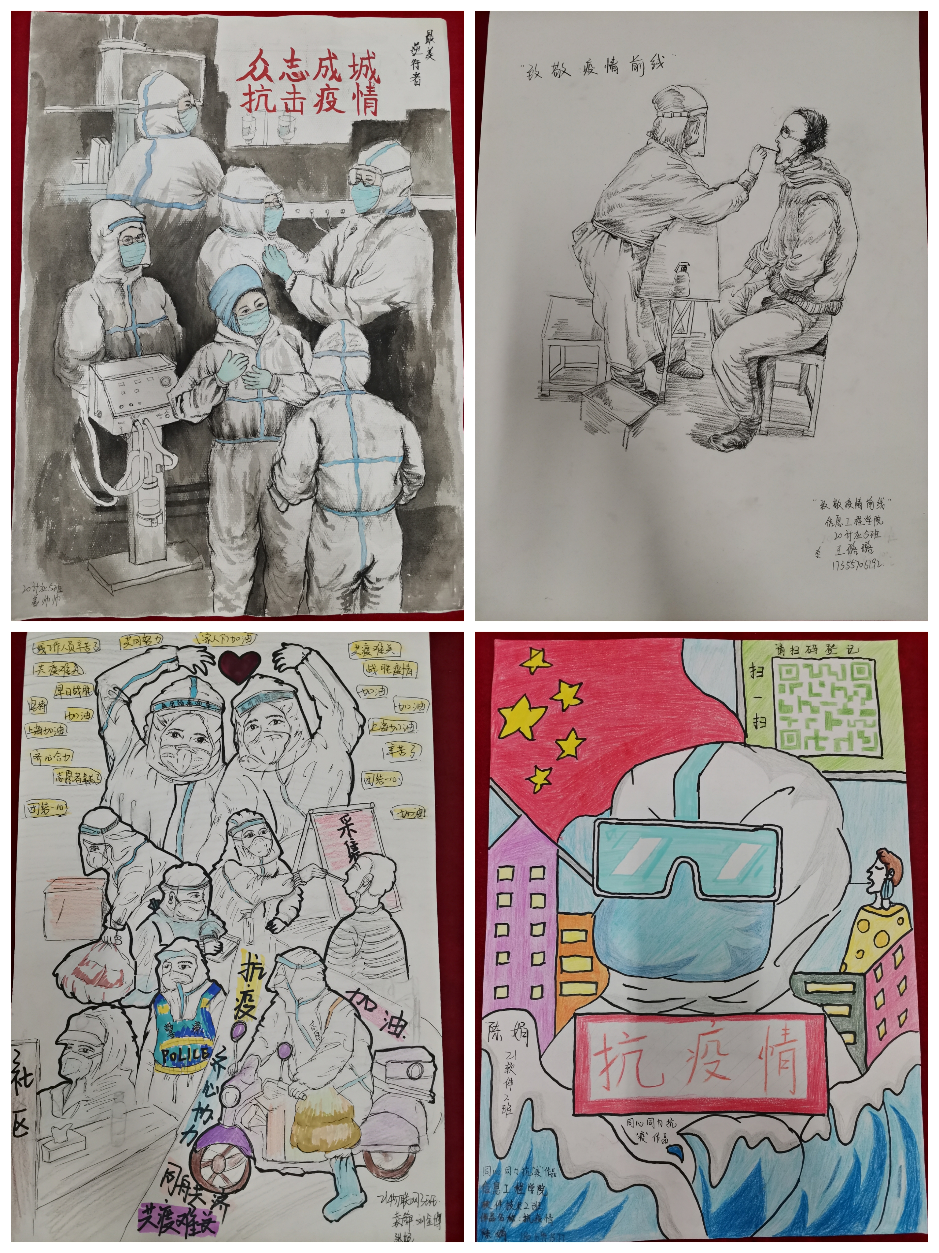 通过自编自绘,同学们从不同角度介绍了新冠肺炎疫情的防控知识以及个人感受,他们用手抄报和黑板报的形式表达对抗疫一线工作人员的感激和敬佩之情。展现了自己对抗击疫情的决心,并将学校日常推广的防疫卫生健康知识展现在一幅幅形式多样、内容丰富的作品之上。同时,本次活动也充分展示了我院疫情防控宣传活动成效,传递了同心同力共抗‘疫’的坚定信心。