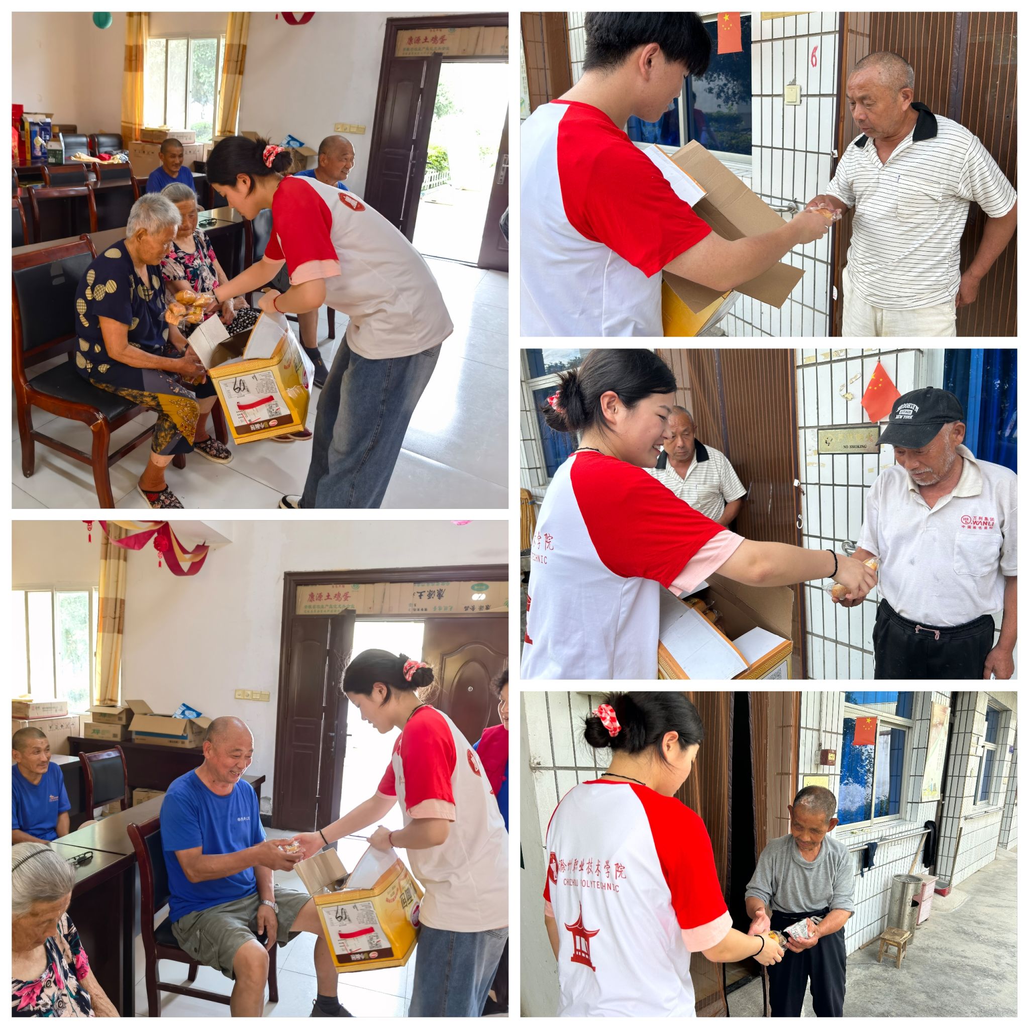 树敬老之风,促社会文明。在端午佳节来临之际,为弘扬中华民族的传统美德,发扬“爱老、敬老、助老”的良好风气。6月21日,信息工程学院10名同学组成的“青春暖夕阳”暑期社会实践团队在朱睿老师的带领下走进扬子敬老院开展“粽享端午节·情暖敬老院”志愿服务活动。