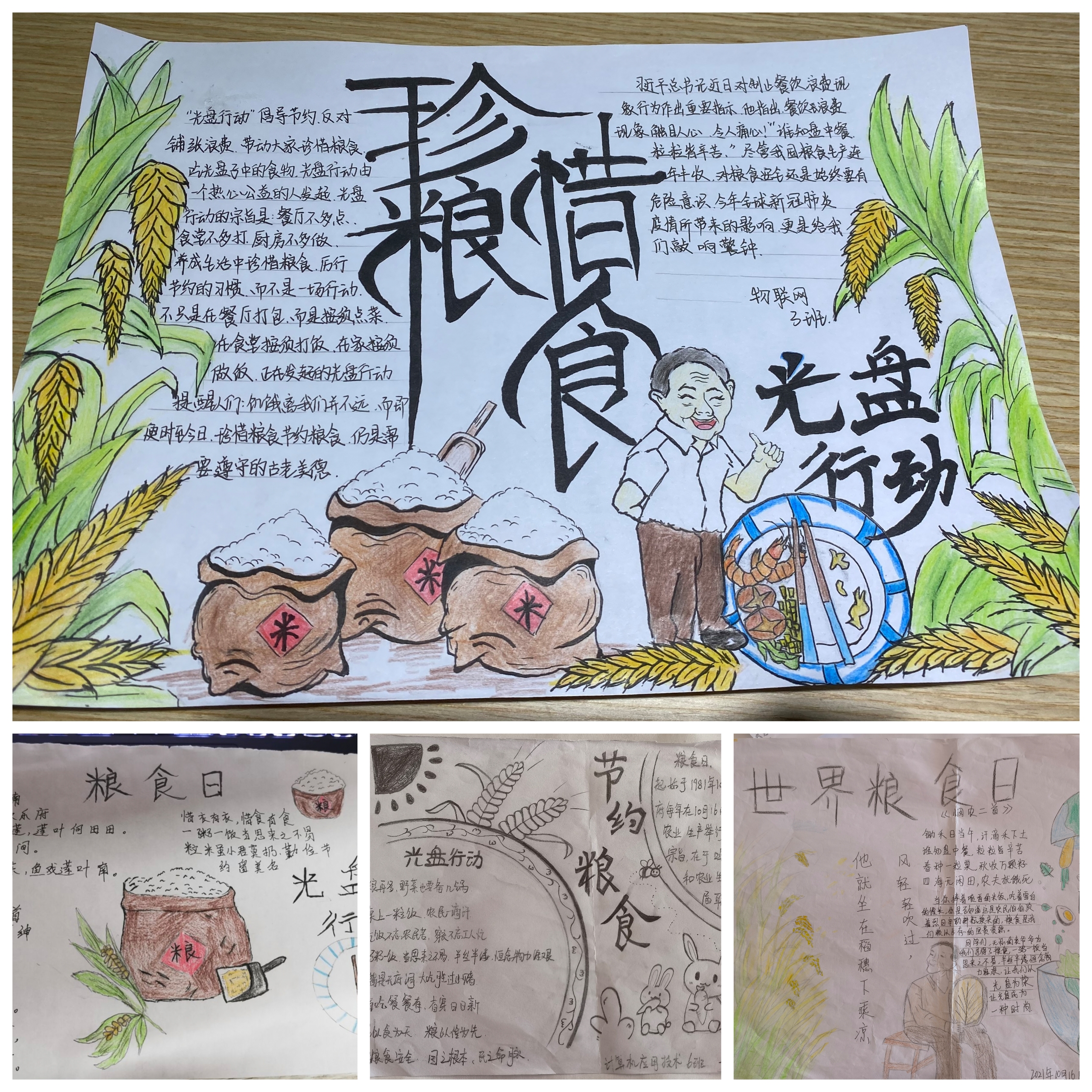 二是以“世界粮食日”为契机,在全院各班级开展了“珍惜粮食”手抄报活动。活动中,同学们利用课余时间通过查阅资料绘制了一份份精美的手抄报,认识到了粮食的来之不易,了解了我国的粮食状况和艰苦奋斗、勤俭节约的中华民族传统美德。