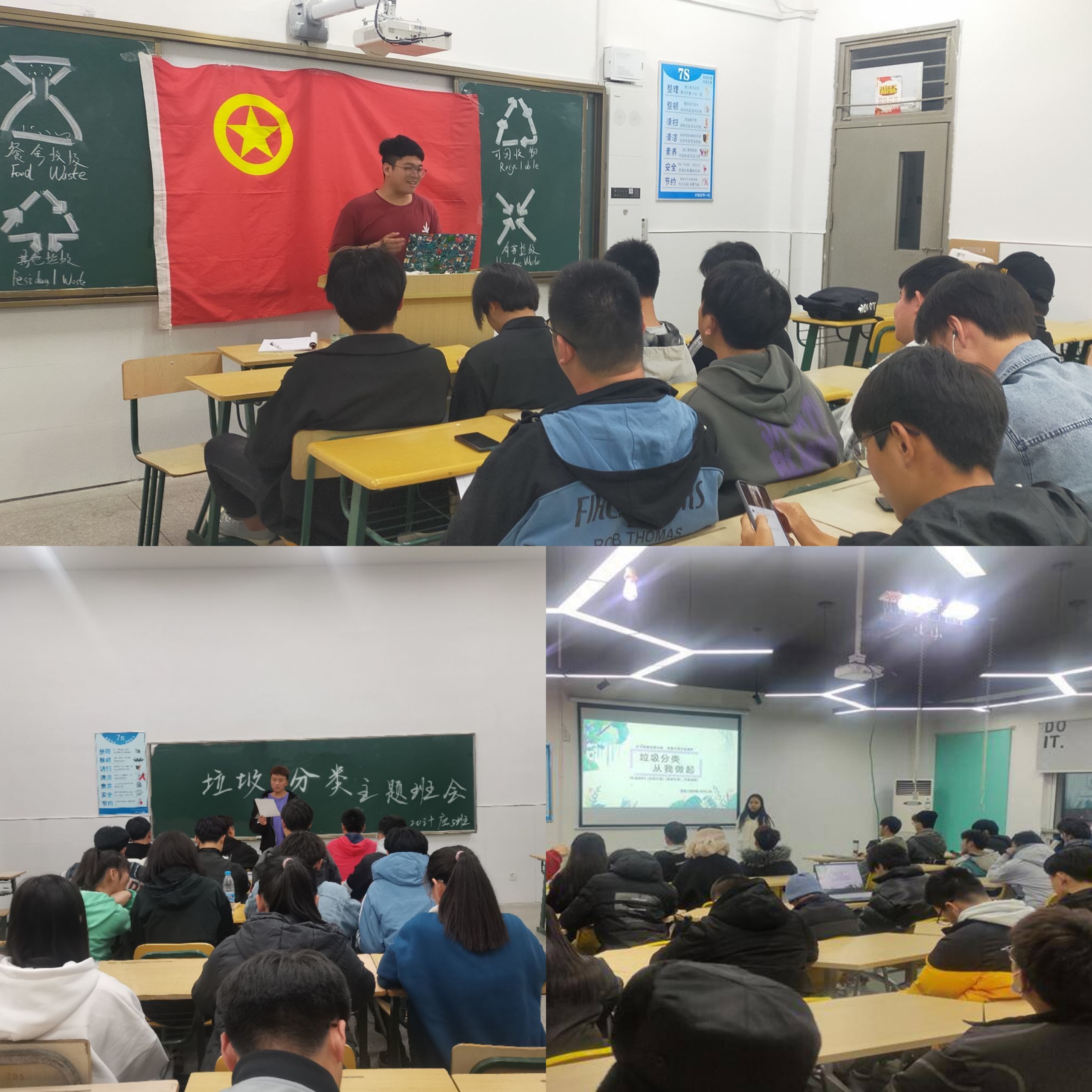 各班以“垃圾分类 从我做起”为主题线上线下多形式开展了主题班会活动,辅导员或班委同学用生动的图片和令人震撼的视频,围绕“垃圾分类的概念”、“实施垃圾分类的原因”、“垃圾分类的投放指导”及“生活垃圾分类的体系建设”等方面帮助同学们深入了解了实施垃圾分类的重要意义。同时,各班同学围绕垃圾分类展开讨论,积极结合自身情况,各抒己见,参与学习交流。同学们不但学会了垃圾分类的正确方法,而且增长了知识。