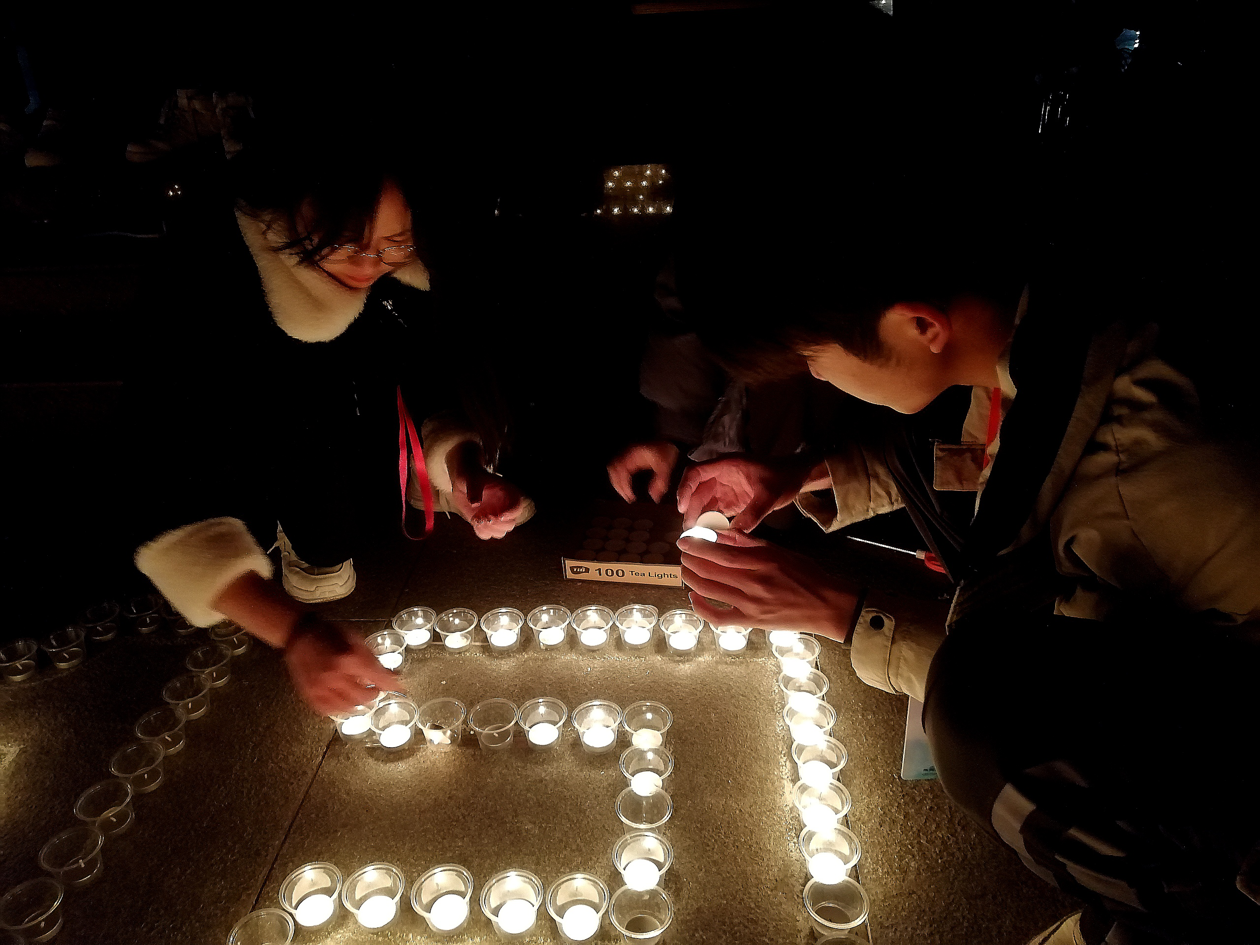 活动开始,由学生代表为此次悼念活动宣读公祭词。活动现场用蜡烛呈现出了“橄榄枝”、“南京”、“和平鸽”等图案,同学们也手捧蜡烛井然有序的站在指定位置,在烛光中为死去的30多万同胞进行默哀。为了让同学们更加深入的了解历史,在南阶205还共同参与了“国家公祭日”观影活动。电影中介绍了南京大屠杀的历史史实,一幕幕真实的画面仿佛把同学们带到了过去,并呼吁大家勿忘历史,珍爱和平!振兴中华,吾辈当自强!