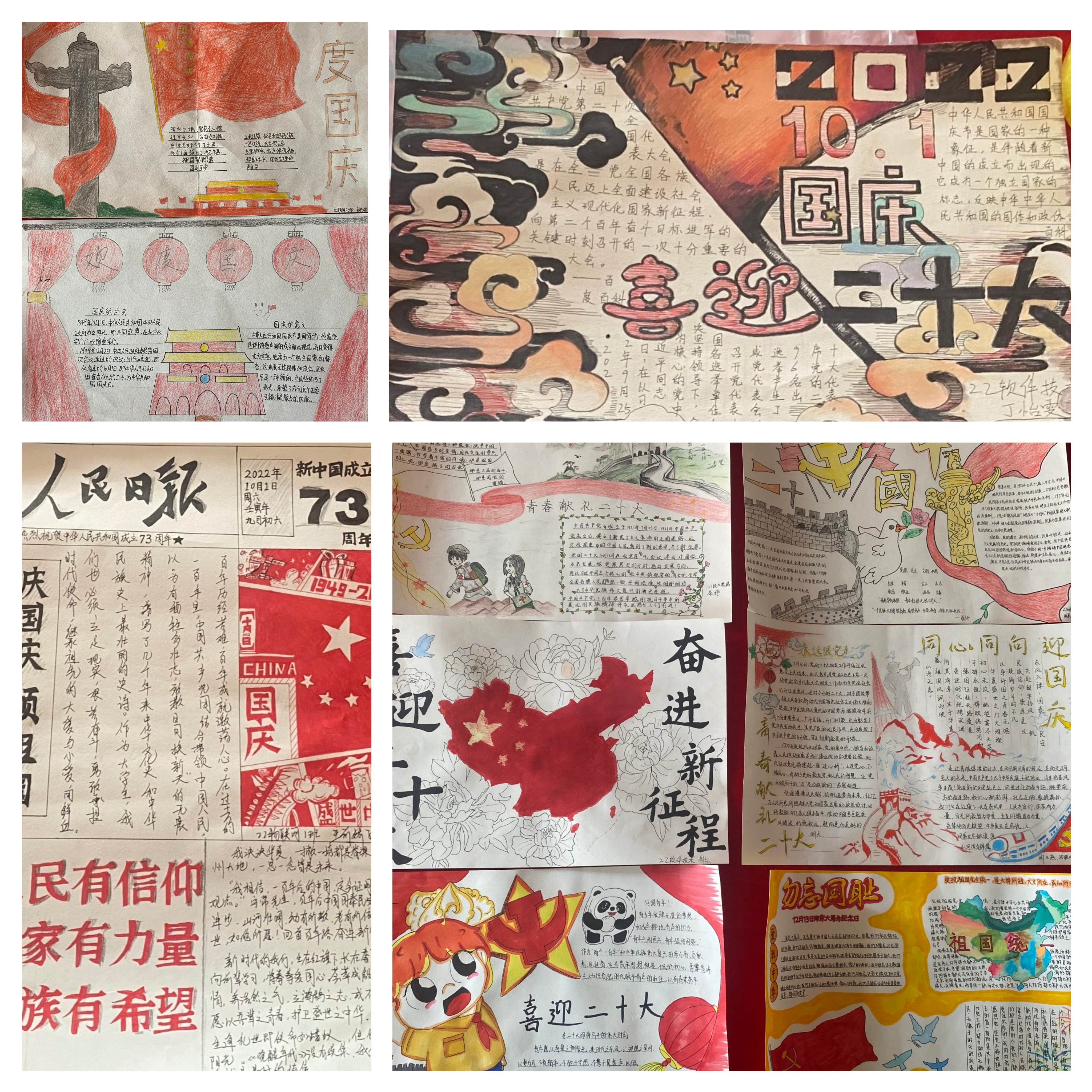 为喜迎党的二十大胜利召开,庆祝新中国成立73周年,加强对学生的爱国主义教育,增强庆祝国庆的浓厚氛围,美化学校文化环境,我院学生会开展了“喜迎二十大,欢度国庆节”主题手抄报征集和班级黑板报评比活动。22级各班级积极踊跃参加。