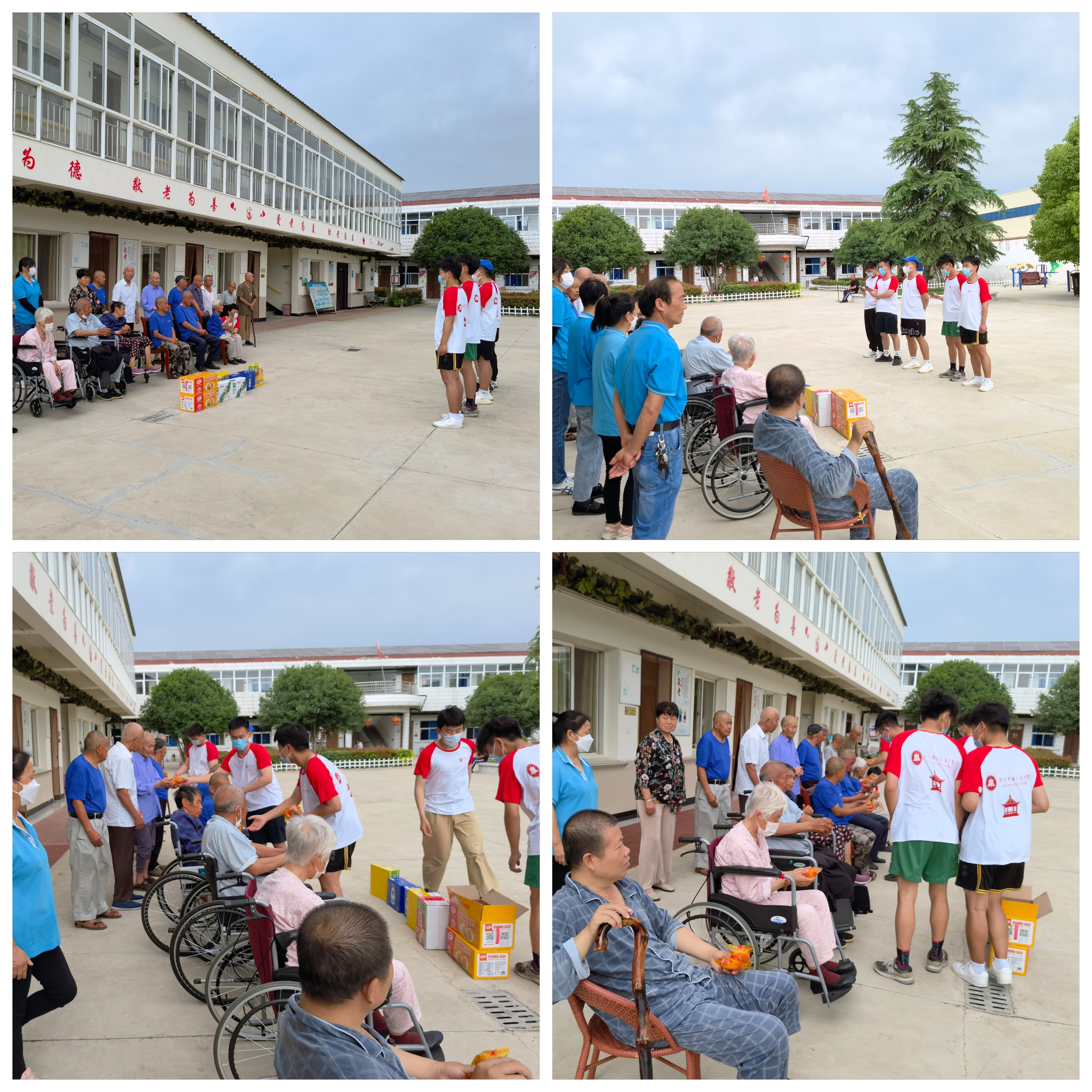 随后,老人们坐在院内的广场上,同学们为老人们唱起了一首首耳熟能详的歌曲,歌声、掌声和欢笑声充满整个敬老院,气氛十分活跃,老人们脸上都露出开心的笑容。星光小队”实践团的到来,为平日清静的敬老院带去了欢声笑语。