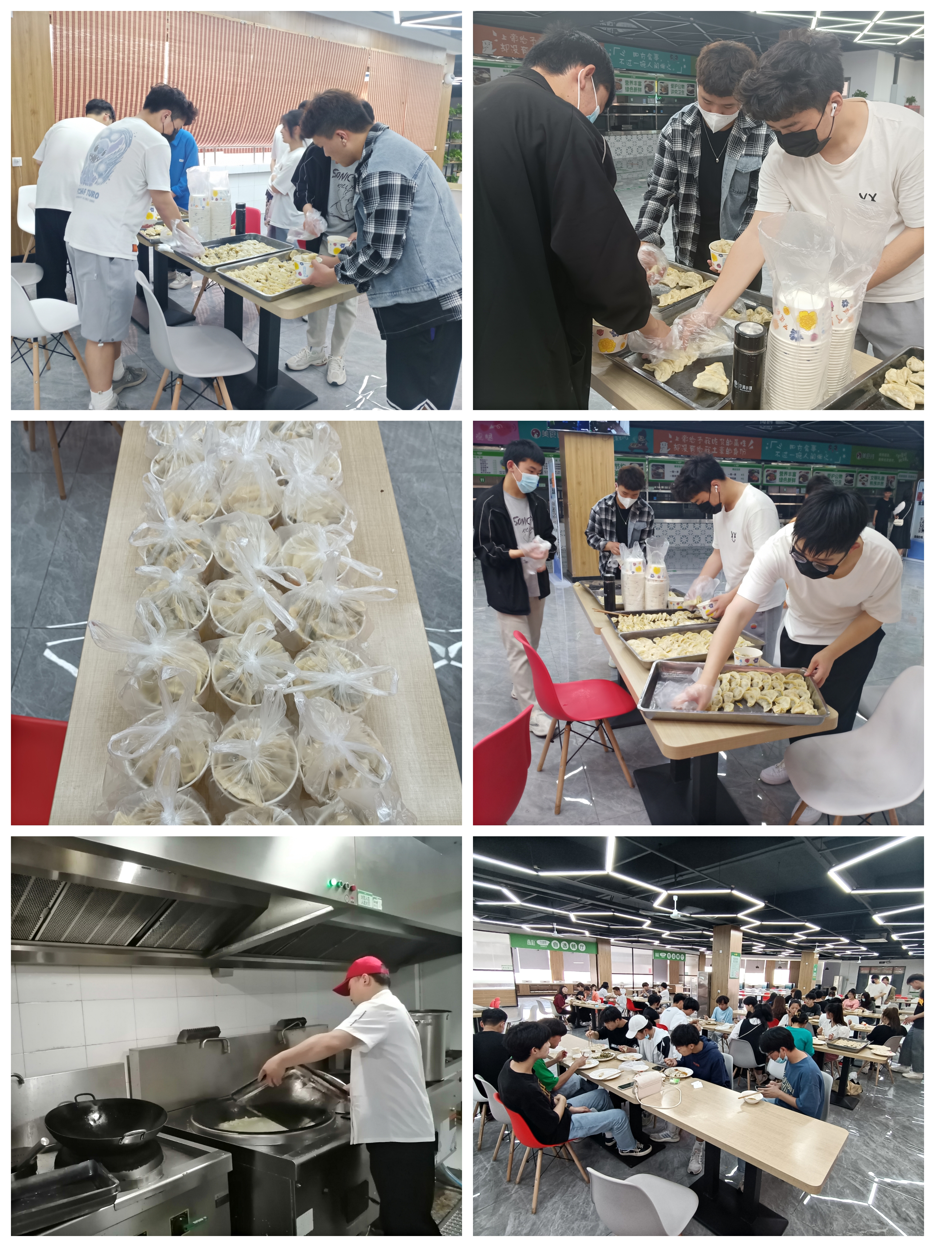 随后同学们把包好的饺子送到食堂后厨进行加工,片刻后,热腾腾的饺子呈现在大家面前。同学们拿起碗筷迫不及待的想品尝到自己亲手做的饺子,虽然饺子有大有小形状各异,还有的因为密封不严下水后就煮开了皮,但是并不影响同学们吃饺子的快乐,同学们也表示能吃到自己包的饺子很幸福。