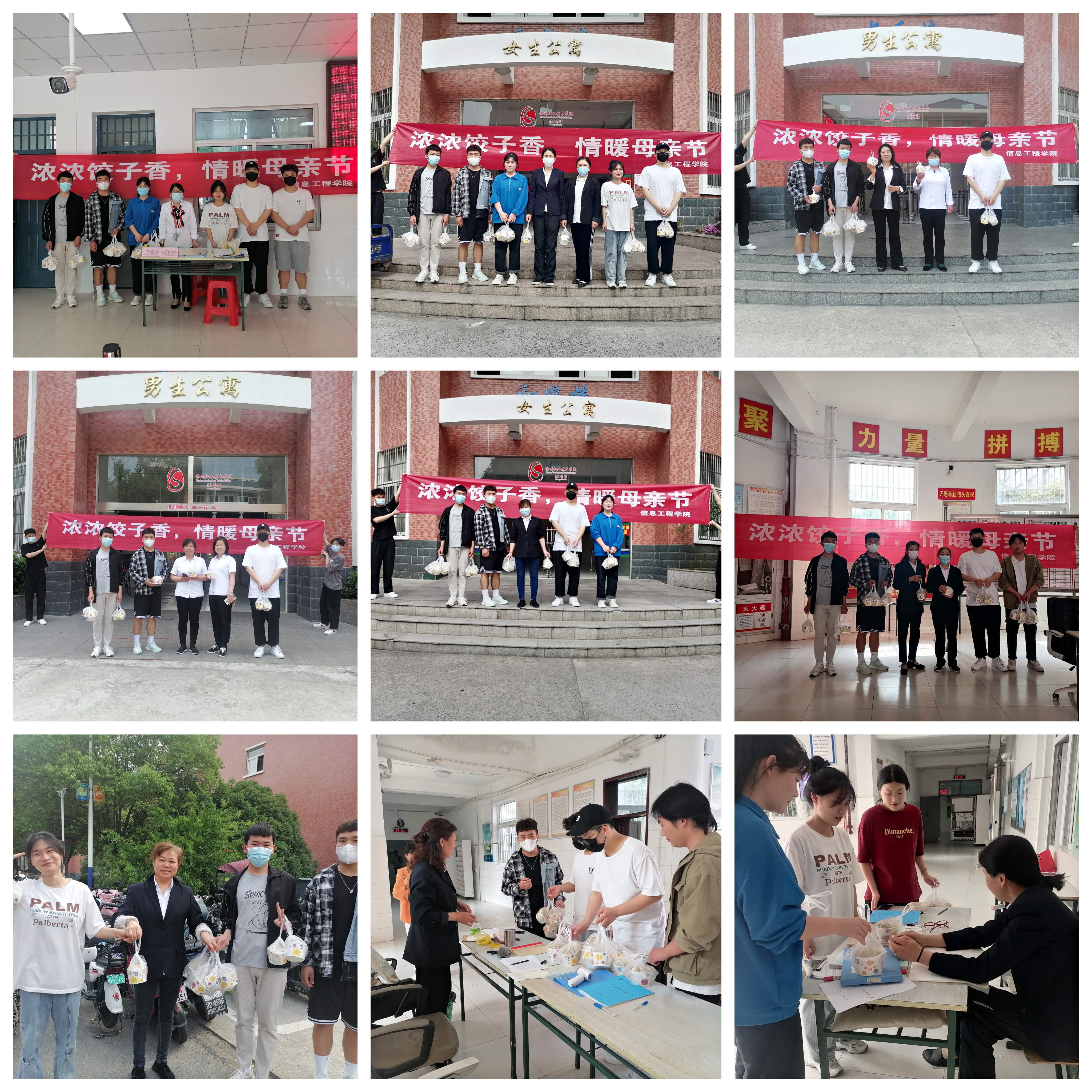 吃完饺子后就进行了送饺子环节,团学干们打包好饺子送给各个宿舍楼的宿管阿姨们,让坚守在岗位上默默奉献,像“妈妈”一样每天照顾我们生活起居的阿姨们感受到母亲节的温暖。