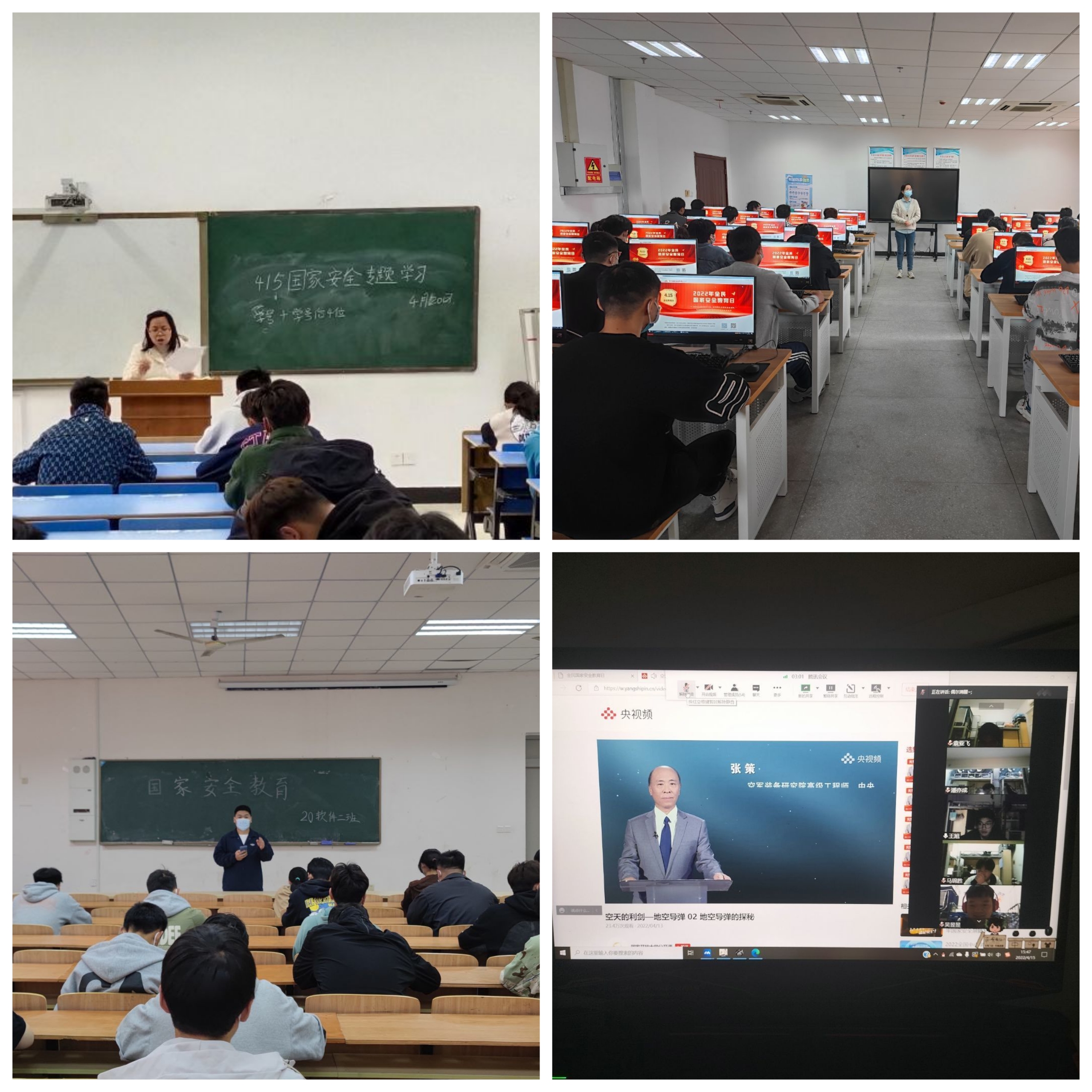 活动中,我院于4月14日下午积极组织全院师生错峰观看了“千万师生同上一堂国家安全教育课”为主题的公开课,学习《国家安全法》《保密法》等法律法规,了解国家安全知识,强化了全院师生的国家安全观念,树牢了“国家安全、人人有责”意识,切实增强了广大师生维护国家安全的意识和能力。