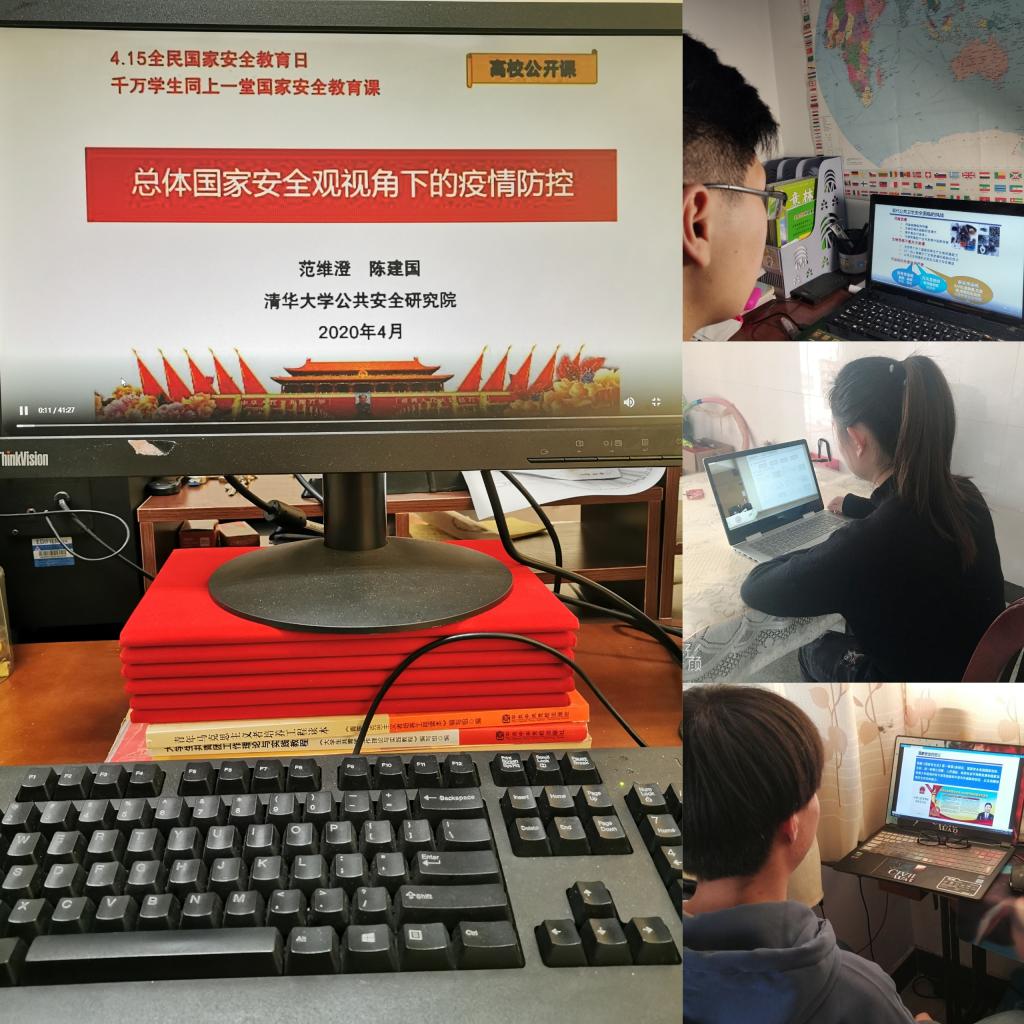 2020年4月15日是我国第五个全民“国家安全教育日”,在这个停课不停学的特殊时期,为深入贯彻培养法治思维,进一步提高同学们的法治意识和国家安全意识,信息工程学院积极响应号召,组织全院学生及辅导员错峰观看“千万学生同上一堂国家安全教育课”,并参与“全民国家安全日知识竞赛”活动,通过班会等形式参与在线讨论。