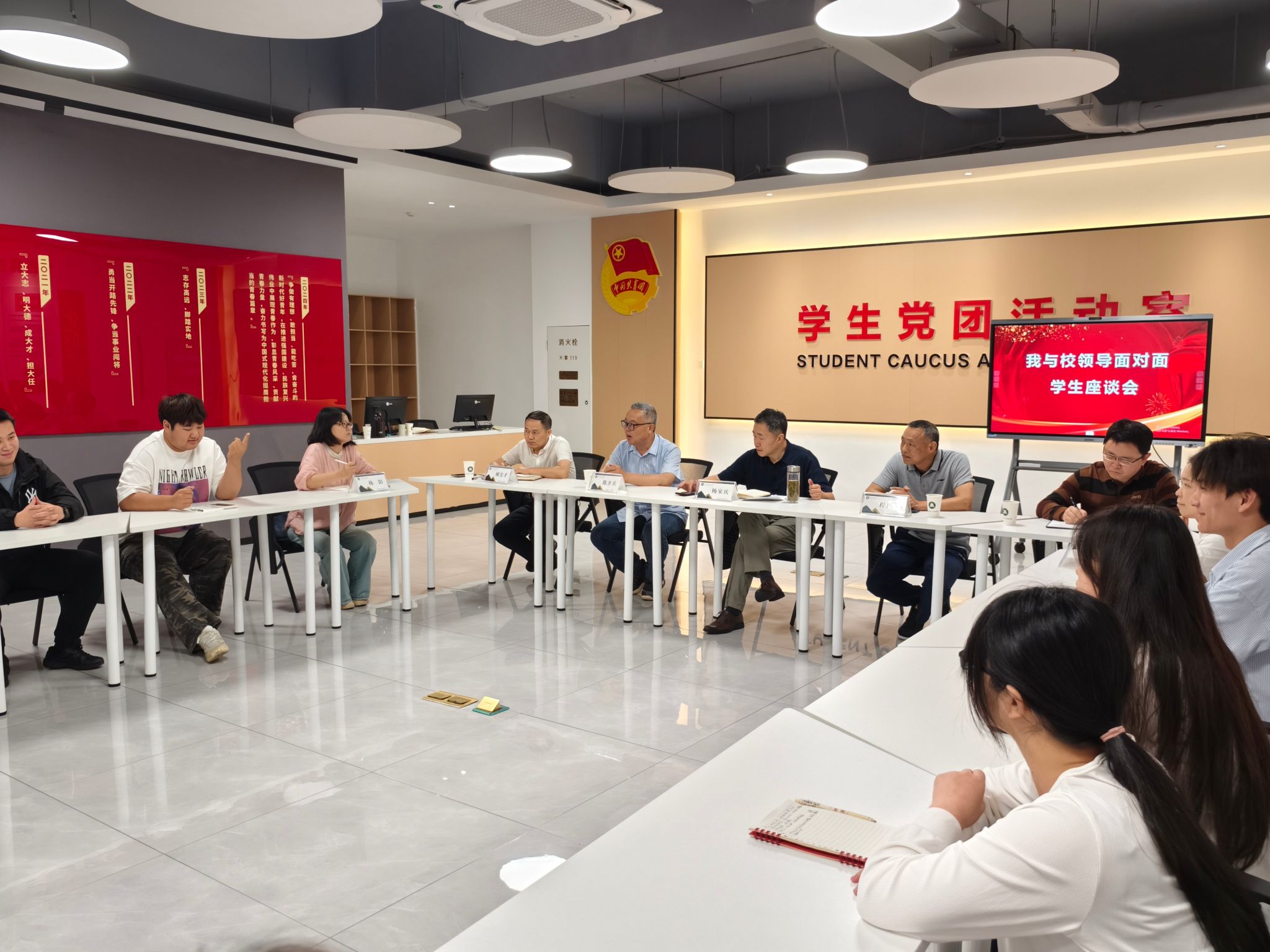为深入了解学生学习生活需求,切实解决实际问题,搭建高效沟通桥梁,5月14日下午,信息工程学院在一站式学生社区党团活动室开展 “我与校领导面对面” 学生座谈会。校党委副书记杨家庆出席座谈会,学生工作处、后勤服务中心、信息工程学院党政主要负责人参加了座谈会,与我院12名学生代表齐聚一堂,共话校园建设与发展。