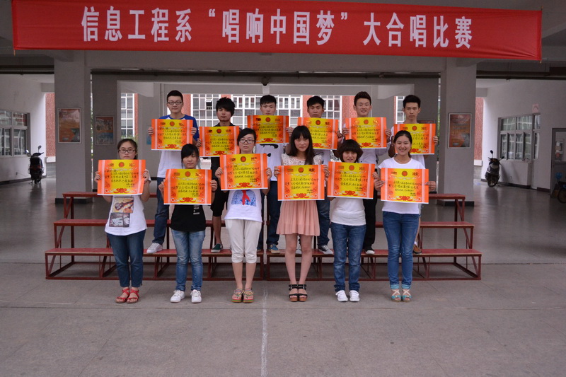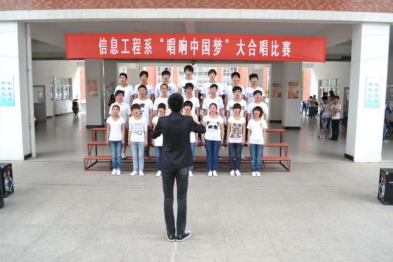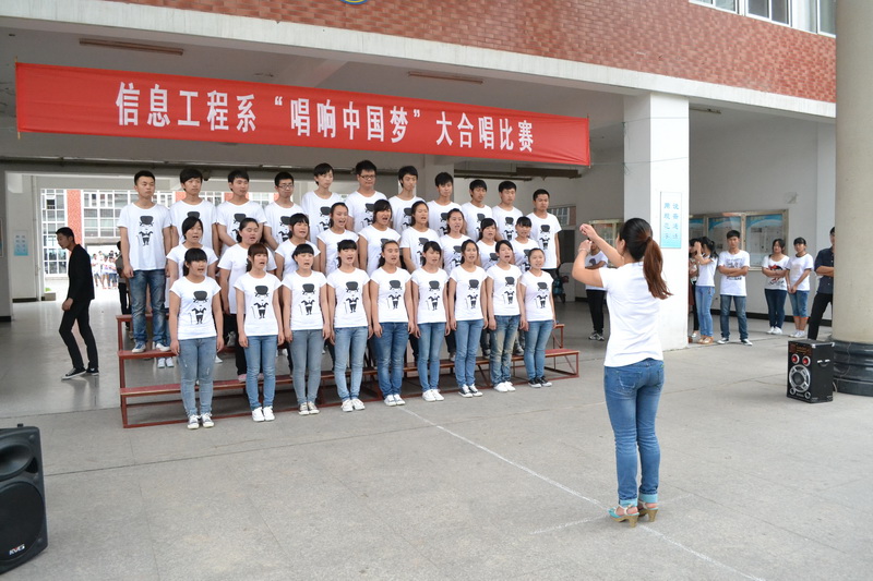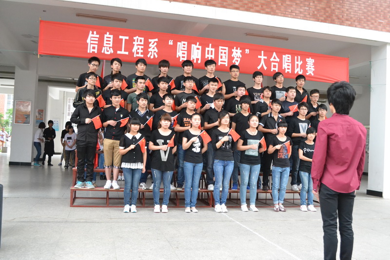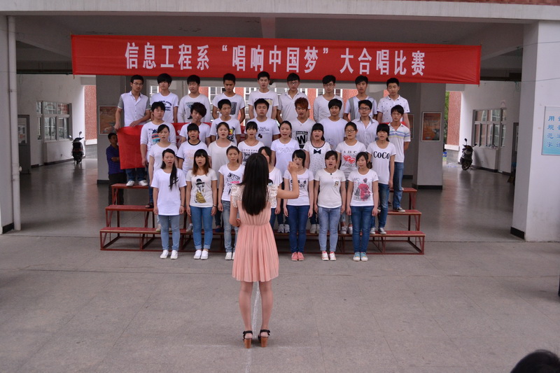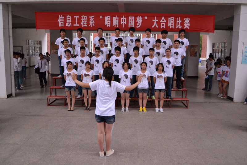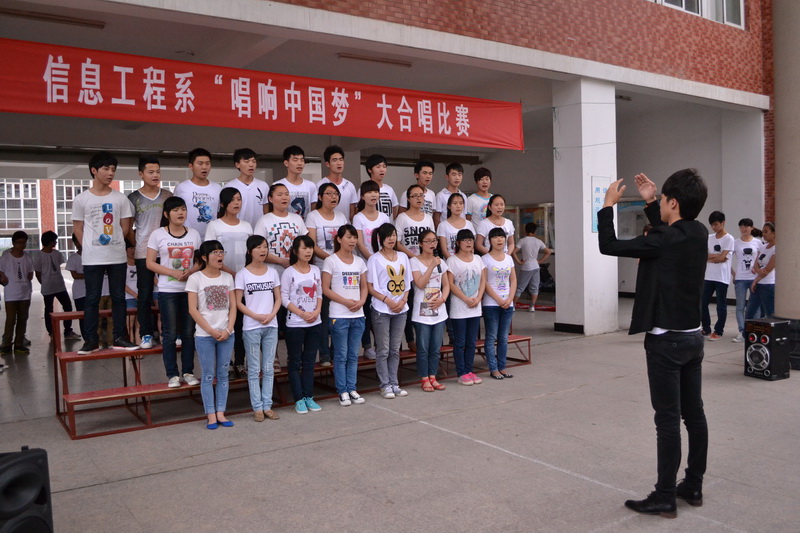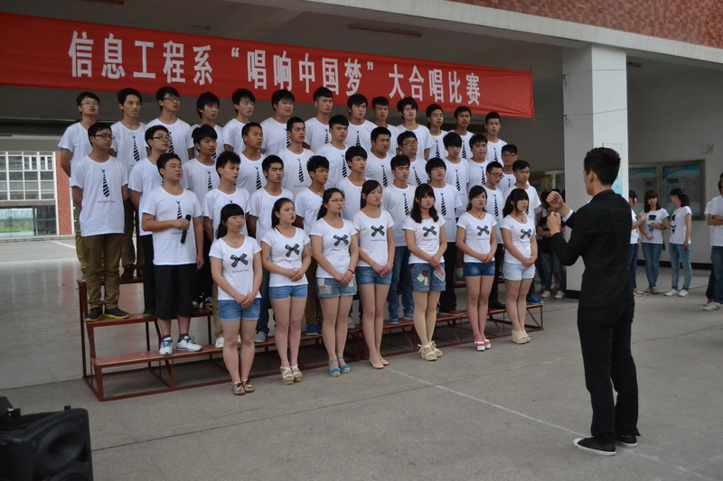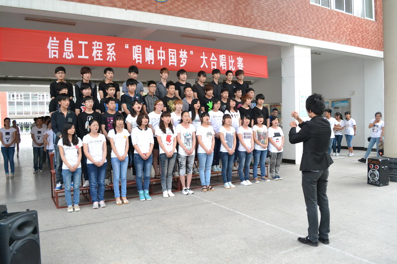 聚合青春正能量,唱响幸福中国梦。2013年6月5日中午,信息工程系“唱响中国梦”大合唱比赛成功举办。本次活动是我系“我的中国梦”主题教育活动之一,共有12个班级参加了本次比赛,系团总支书记、部分辅导员、院广播站主持人出席并担任评委。