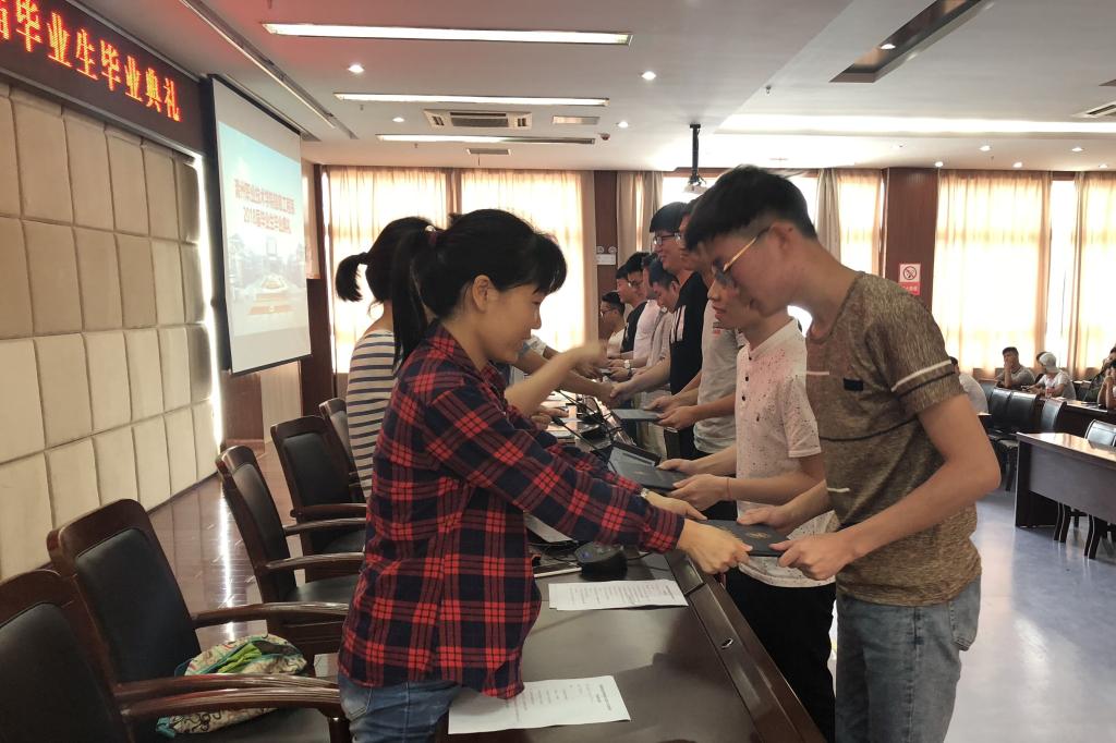 庄严的国歌拉开了毕业典礼的帷幕,吴昌雨副主任发表了热情洋溢的毕业致词,刘东旭老师代表辅导员发言,领导和老师们为毕业生代表颁发毕业证书,王朝阳同学作为毕业生代表发言。会议还宣读了我系荣获2018年省优和院优的毕业生名单。