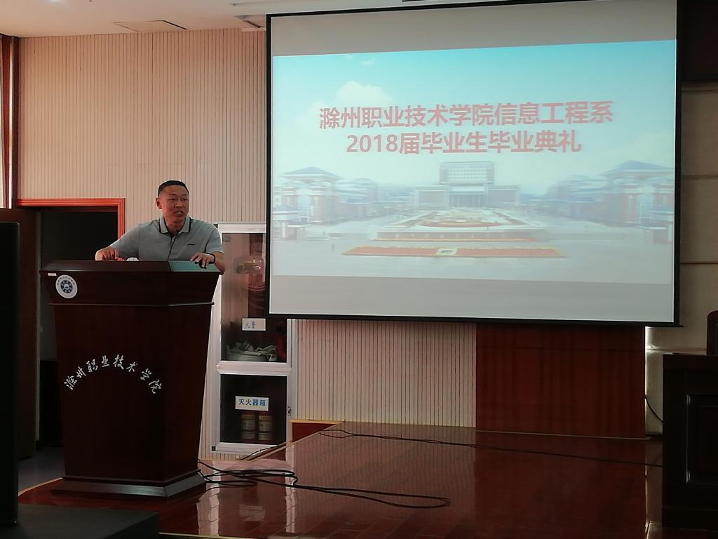 6月24日上午,在beat365在线唯一官网信息工程系2018届毕业生毕业典礼上,我系党总支书记程洪斌给全体毕业生上了最后一课,主题为“立足现在,放飞梦想”,为本学期书记讲规工作画上句号。