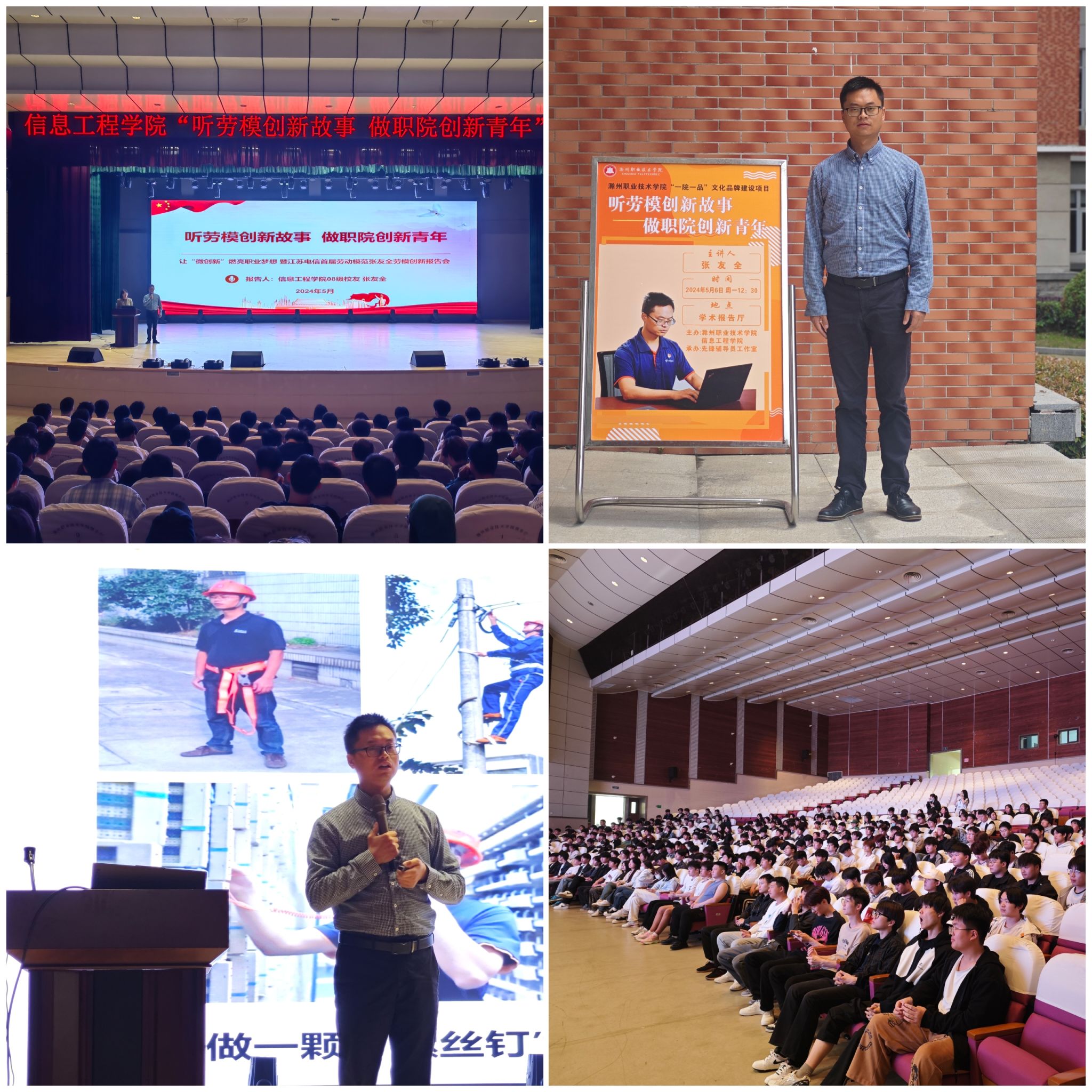 学院邀请2011届优秀校友张友全开展了以“听劳模创新故事,做职院创新青年”为主题的报告会,鼓励学生向劳模学习,牢固树立劳动最光荣的理念。