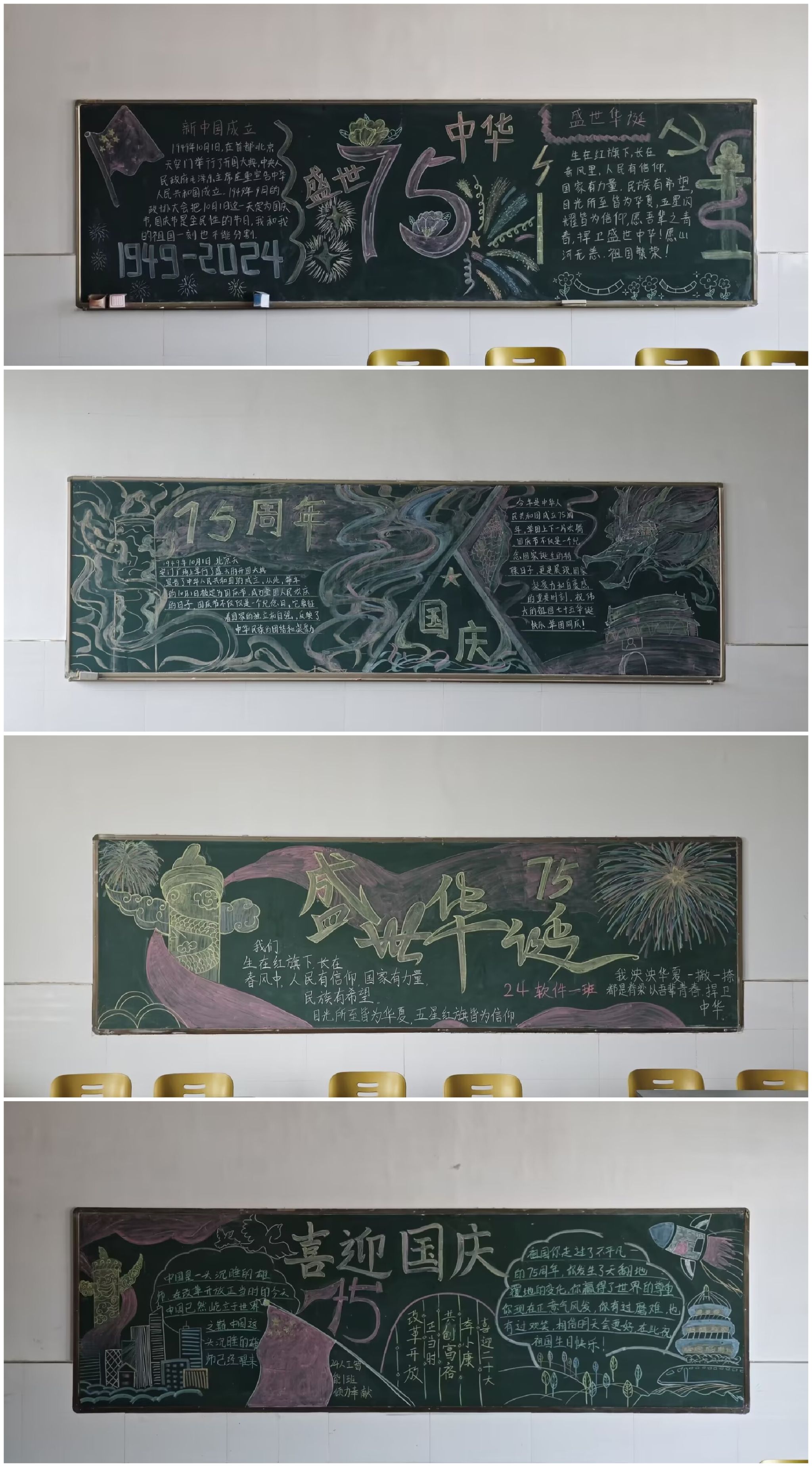 为庆祝新中国成立75周年,加强对学生的爱国主义教育,增强浓厚氛围,我院开展了以“欢度国庆·盛世中华”为主题的班级黑板报评比活动。9月26日下午,学生会对各教室的黑板报进行了检查评比。