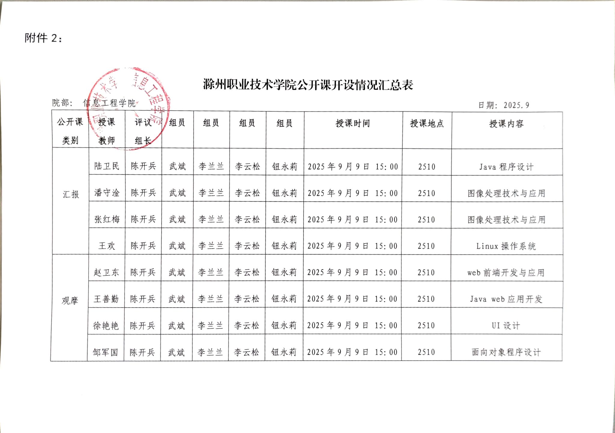 2025年beat365在线唯一官网信息工程学院公开课开设情况公示