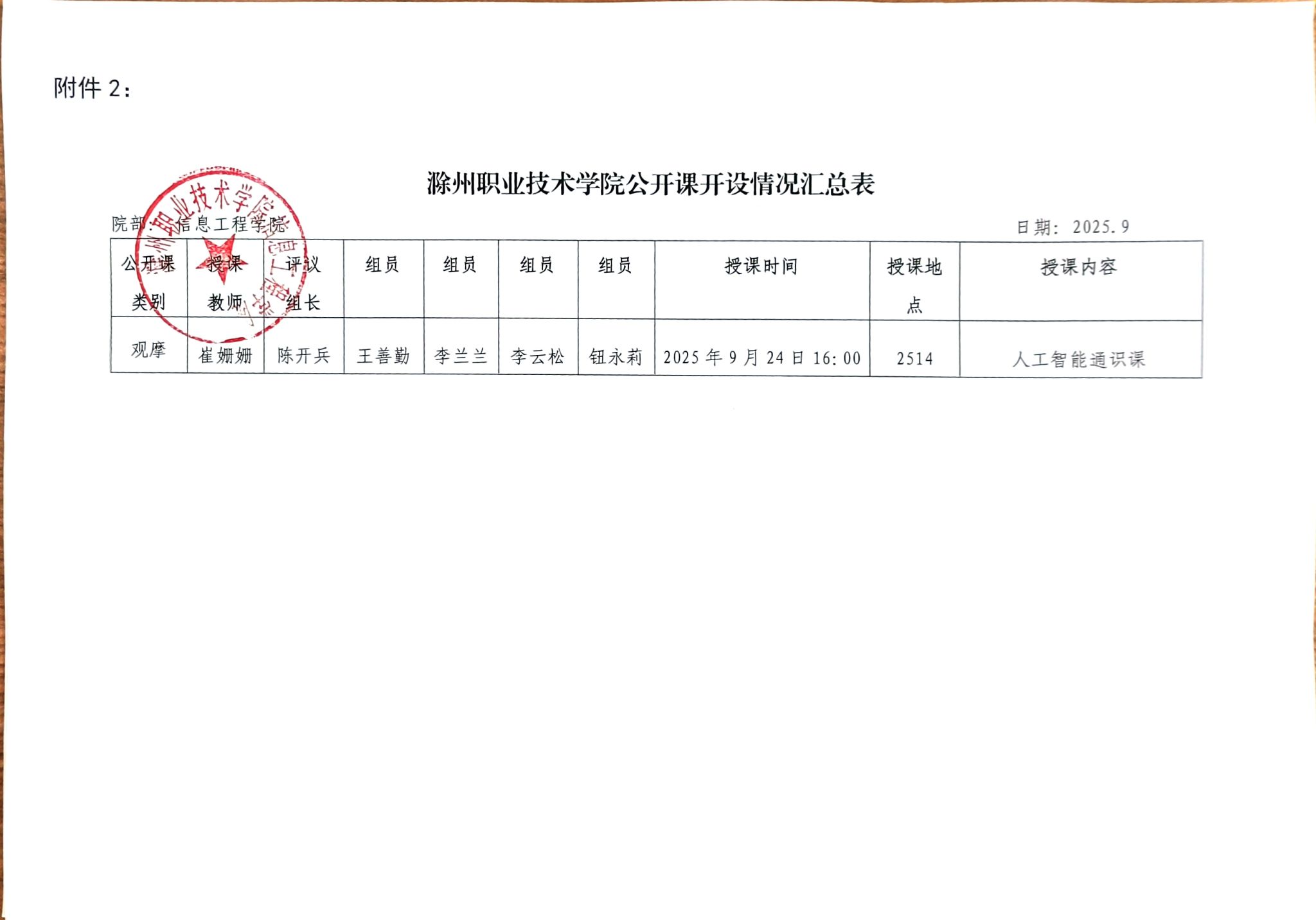 2025年beat365在线唯一官网信息工程学院公开课开设情况汇总表公示,公示期:2025年9月1日-9月5日,共5个工作日。若有异议请反馈至:0550-3854579。