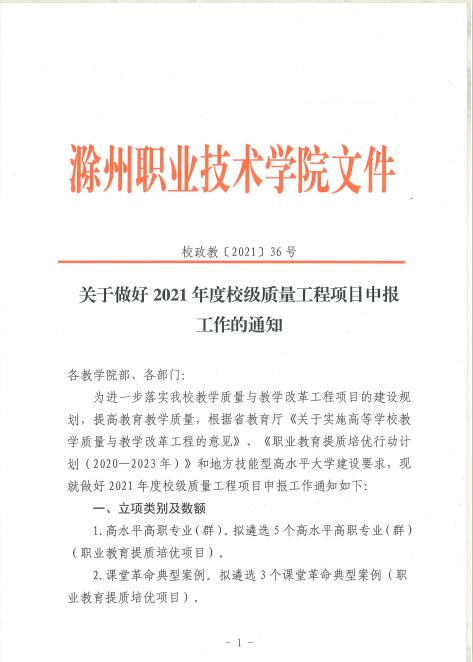 转发学校《关于做好2021年度校级质量工程项目申报工作的通知 校政教〔2021〕36号》