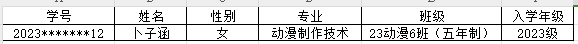 卜子涵在2024-2025学年第1学期开学后未返校,该生辅导员与卜子涵联系,卜子涵表示因工作原因拟退学,但经多次联系,卜子涵仍未返校办理退学手续。自2024年10月16日以来,该生及其家长一直不接电话、不回QQ,经多途径尝试,仍无法联系上卜子涵。卜子涵的基本信息如下: