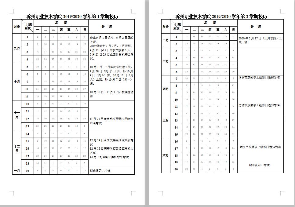 beat365在线唯一官网2019-2020学年校历