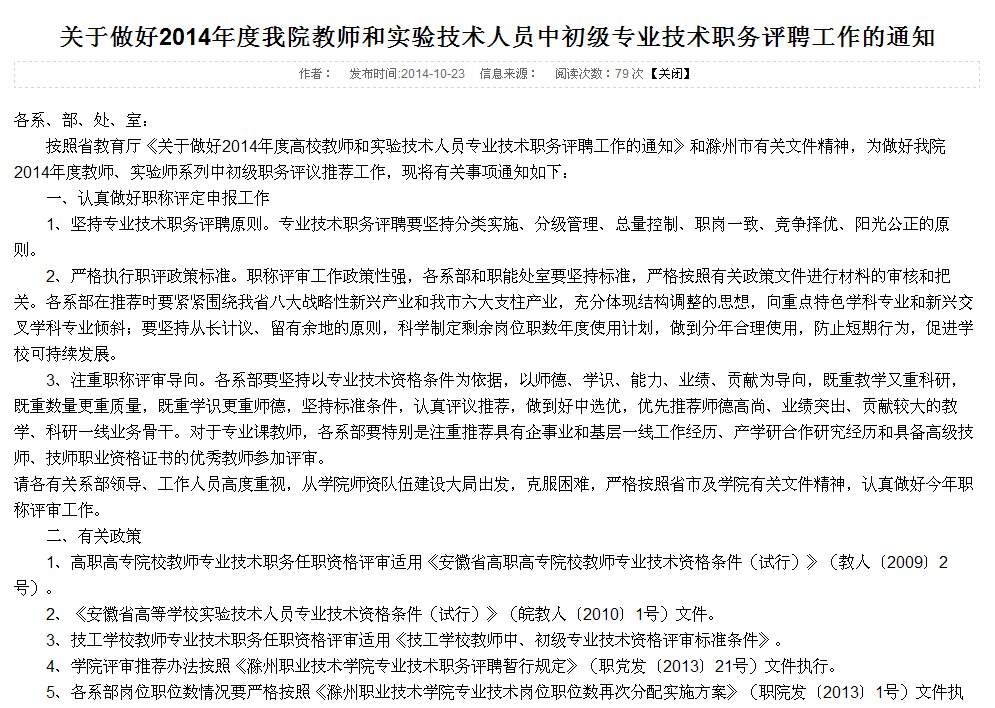 关于做好2014年度我院中初级专业技术职务评聘工作的通知