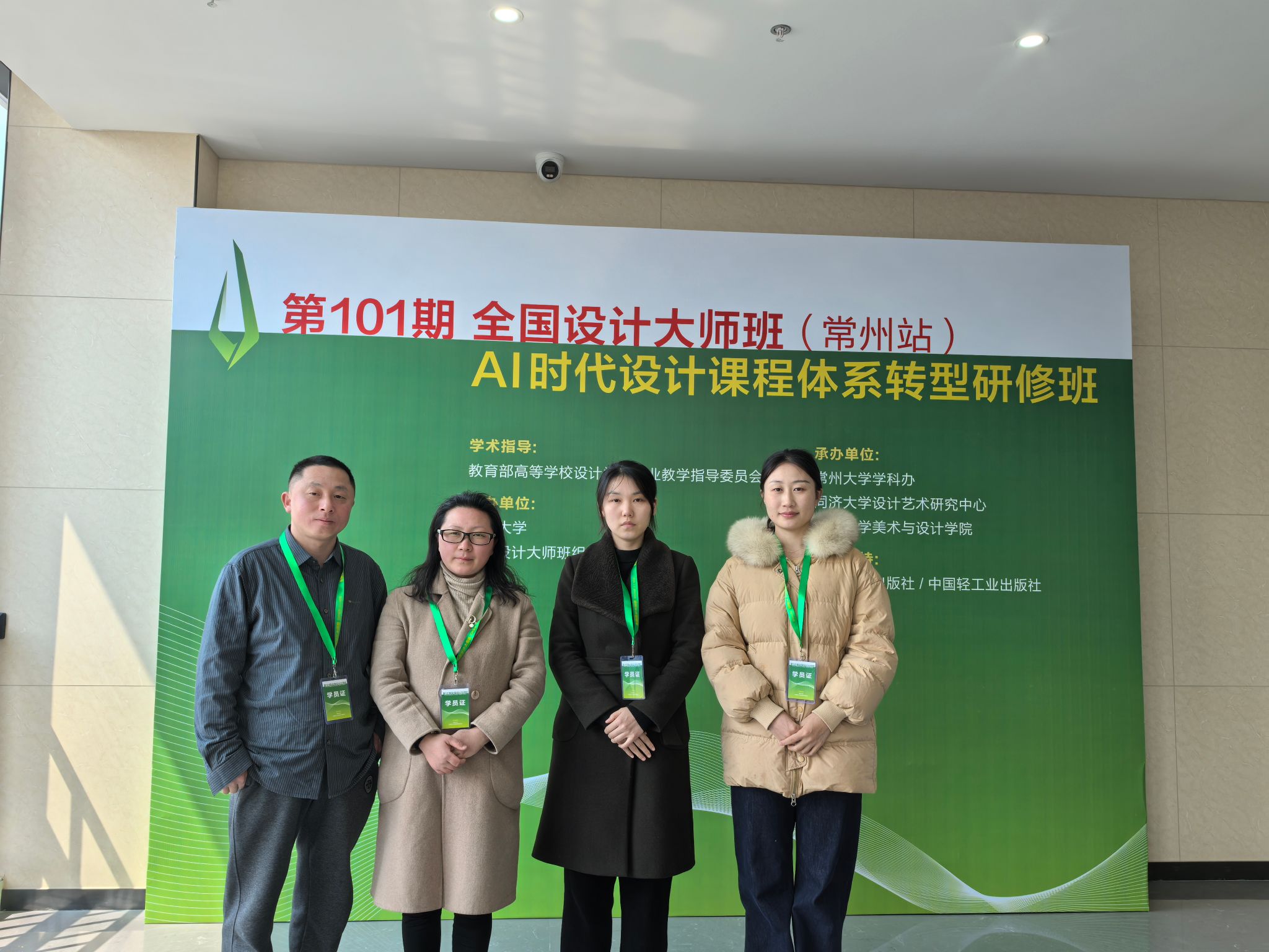 2025年3月15日至16日,由教育部高等学校设计学类教学指导委员会学术指导、全国设计大师班组委会主办的第101期(常州站)——“AI时代设计课程体系转型提高研修班”在江苏常州圆满落下帷幕。传媒与设计学院室内艺术设计专业负责人黄瑞、艺术设计专业负责人王晓玮、专任教师周纺、王佳慧参加了此次培训,本次研修班汇聚了全国几十所高职院校的艺术设计专业教师,聚焦人工智能时代下设计教育的转型与升级,共同探索技术与教育深度融合的创新路径。