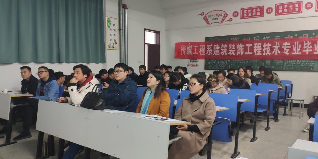 答辩现场,同学们认真汇报PPT文件,从CAD图纸、3D效果图、彩色平面图展示、工程预算书等方面阐述自己的设计作品,大家汇报条理清楚、语言流畅,得到了企业的充分肯定与认可,不时传来掌声,企业当时就抛来了橄榄枝并发出邀请。