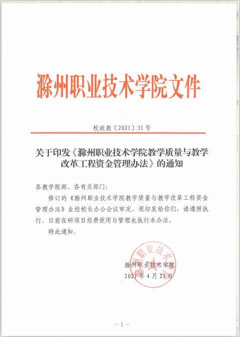 校政教〔2021〕31号 关于印发《beat365在线唯一官网教学质量与教学改革工程资金管理办法》的通知.pdf