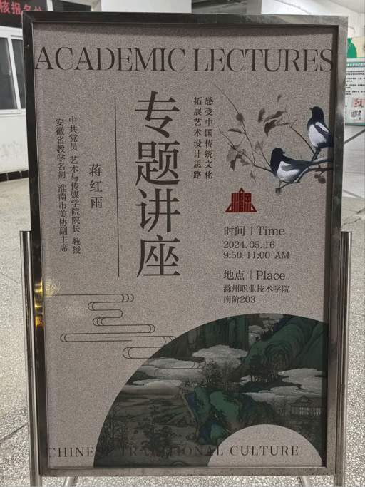 2024年5月16日上午在南阶203教室,传媒与设计学院邀请到安徽省教学名师、淮南市美协副主席、中共党员、艺术与传媒学院院长,蒋红雨教授,为我院师生带来了一场题为《感受中国传统文化拓展艺术设计思路——谈中国画及其风格》的精彩讲座。本次讲座由闻建强院长主持。