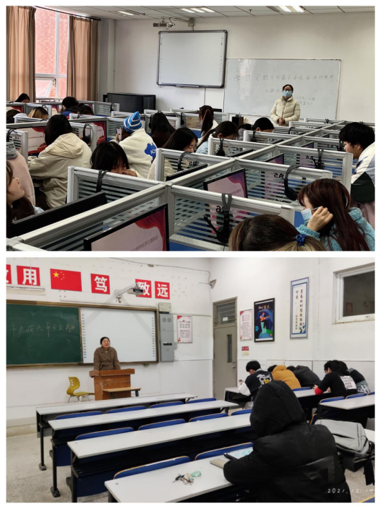学院教师利用课间、线上+线下互动,持续浓厚宣贯氛围;学院辅导员结合实际,把“讲道理”与“讲故事”结合起来,晚自习期间到教室对青年学生进行了学习贯彻党的十九届六中全会精神宣讲。本次宣讲从全会的基本情况、党的百年奋斗的重大成就、党的百年奋斗的历史经验以及不忘初心实现第二个百年奋斗目标的新赶考之路四个方面对党的十九届六中全会精神进行了解读。