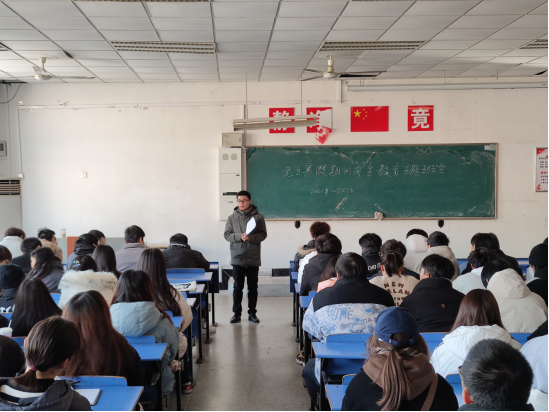 会上,辅导员结合近期学生工作和实际案例对大家提出几点要求:一是期末考试临近,大家要增强诚信意识,杜绝考试违纪现象,以考风促学风,讲诚信促和谐,认真学习《学生手册》,牢记校规校纪;二是元旦、寒假期间,要强化自我防范意识和自我保护意识,注意假期的出行安全、人身安全和财产安全,自觉遵守旅途中及属地疫情防控管理要求。三是注意离校时间,返校时间等通知,未经学校允许,不得擅自返校。整理好个人物品,做好宿舍安全排查工作,注意防火、防盗,配合好宿管中心做好离校登记。最后告诫大家安全重于泰山,防微杜渐是关键,懂得感恩孝敬父母,放假期间多读书,提高自身综合素质,做一名有理想有抱负的新时代大学生。