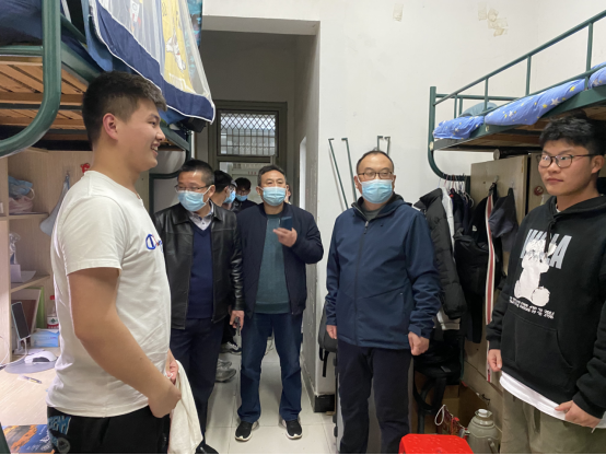 走访过程中,王广保一行人和学生亲切交流,询问同学们在学习及生活上遇到的困难,叮嘱学生们在特殊时期要提高疫情防控意识,严格遵守学校疫情防控相关要求,做好每日宿舍开窗通风、卫生清洁工作,加强体育锻炼,提高身体素质。同时询问同学们的心理和生活状况,开展疫情防控期间宿舍防疫工作检查和防疫知识宣传,进行必要的心理疏导。