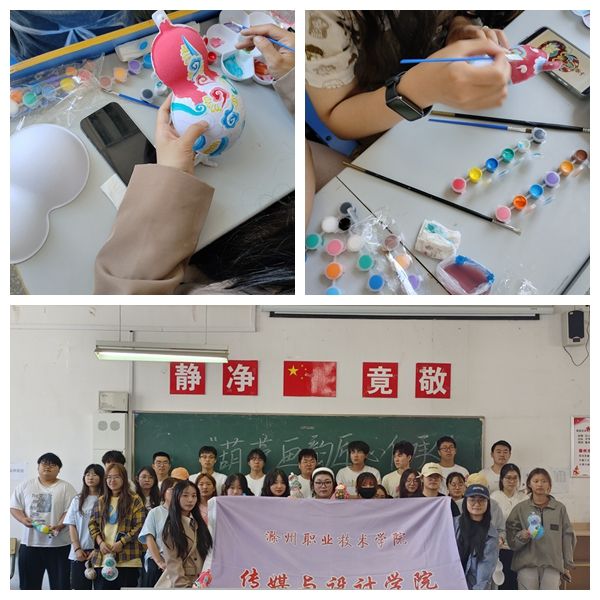 “葫芦”取其谐音“福禄”,代表着吉祥幸福,葫芦彩绘不仅是一种特色传统的工艺美术品,还是非遗文化的重要组成部分。为传承和弘扬中华传统文化,持续丰富“校园文化”活动,传媒与设计学院团总支于5月15日下午在北阶102举办“葫芦画韵 匠心传承”葫芦彩绘活动,各学院学生积极参与。