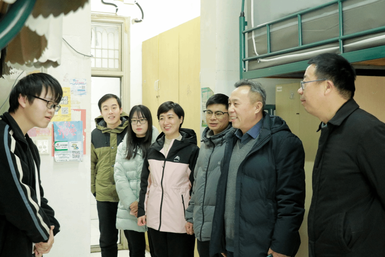 走访期间,李平权一行在5号公寓楼和6号公寓楼依次走访了多间宿舍,对学生宿舍的卫生状况、安全设施以及公共设施进行了细致的检查,认真查看了学生宿舍的床铺、衣柜、书桌等生活设施。对于发现的问题,现场提出了具体的改进意见,并要求学院及相关部门及时解决,确保学生们能够在一个安全、舒适的环境中学习和生活。