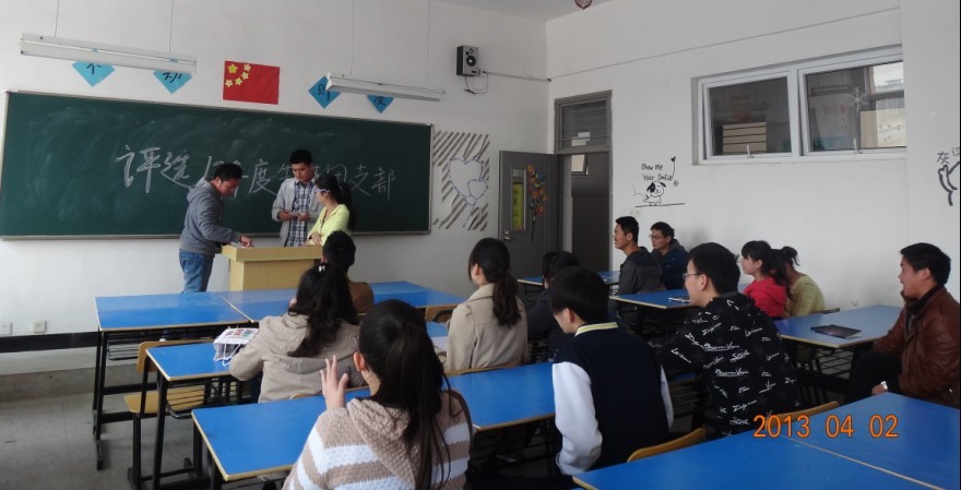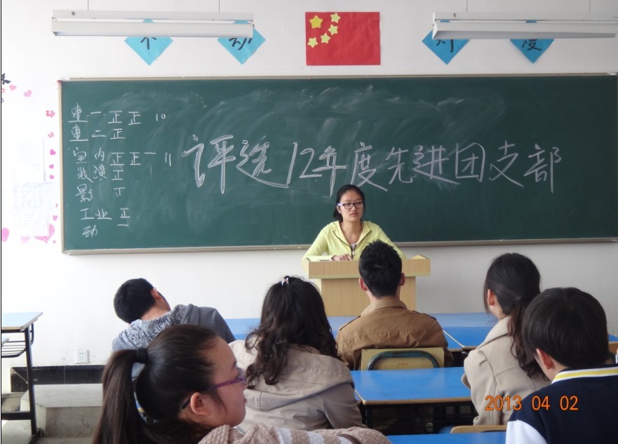 2013年4月10日中午11:40艺术设计系先进团支部评选活动在我院4411教室顺利展开。此次评选活动为投票评选,投票者为各班班级班长、团支部书记以及大一团总支成员。