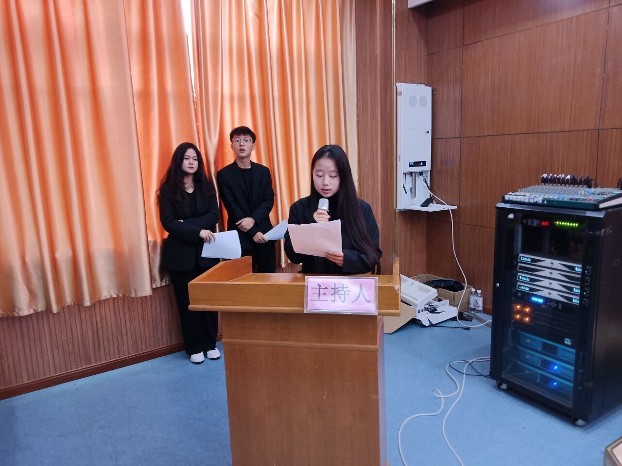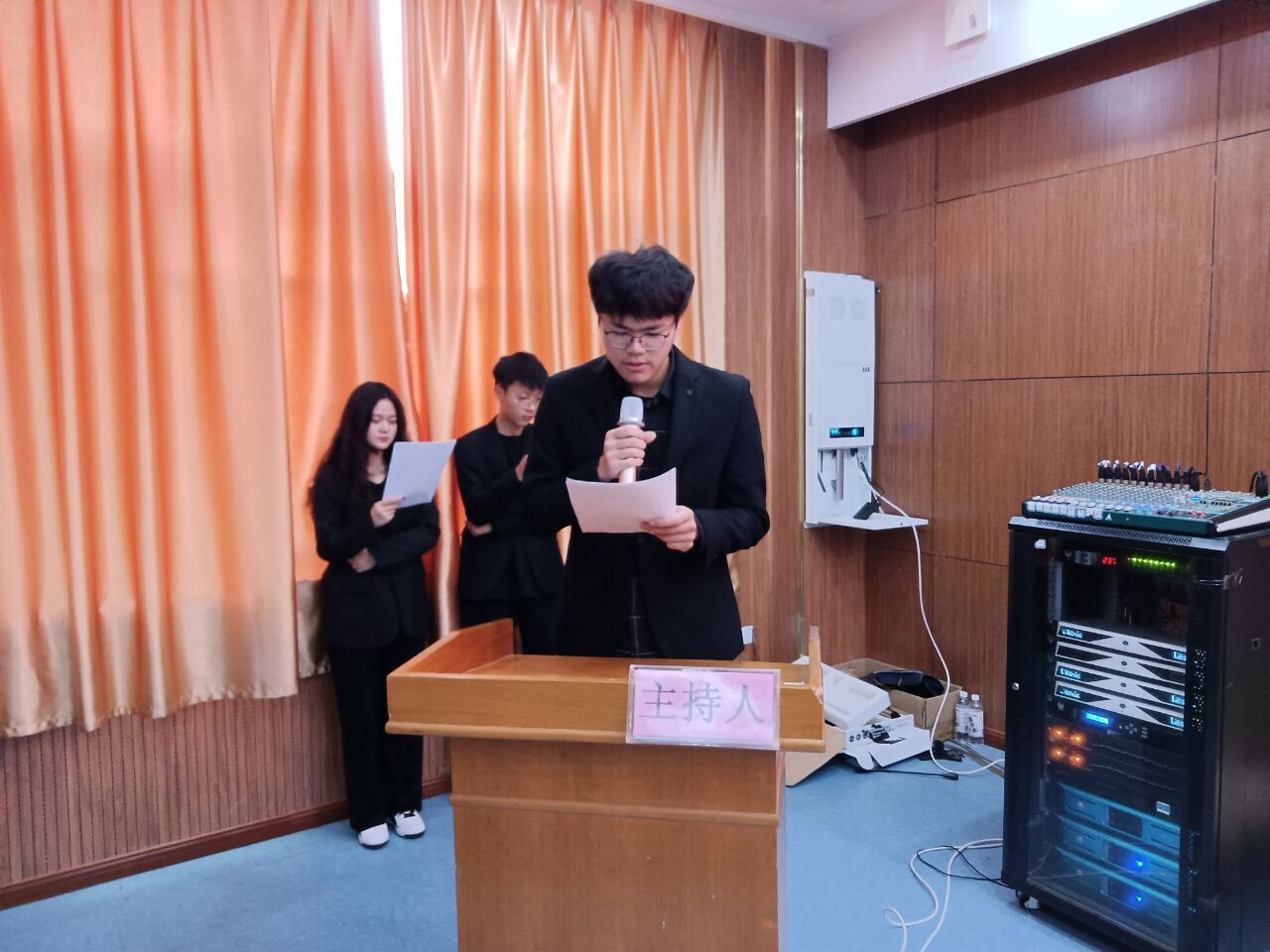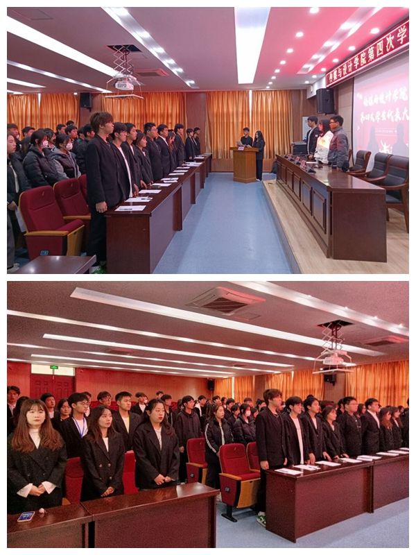 会议主持人宣读会议须知并宣布大会开始。在庄严雄壮的国歌声中,传媒与设计学院第四次学生代表大会拉开了帷幕。